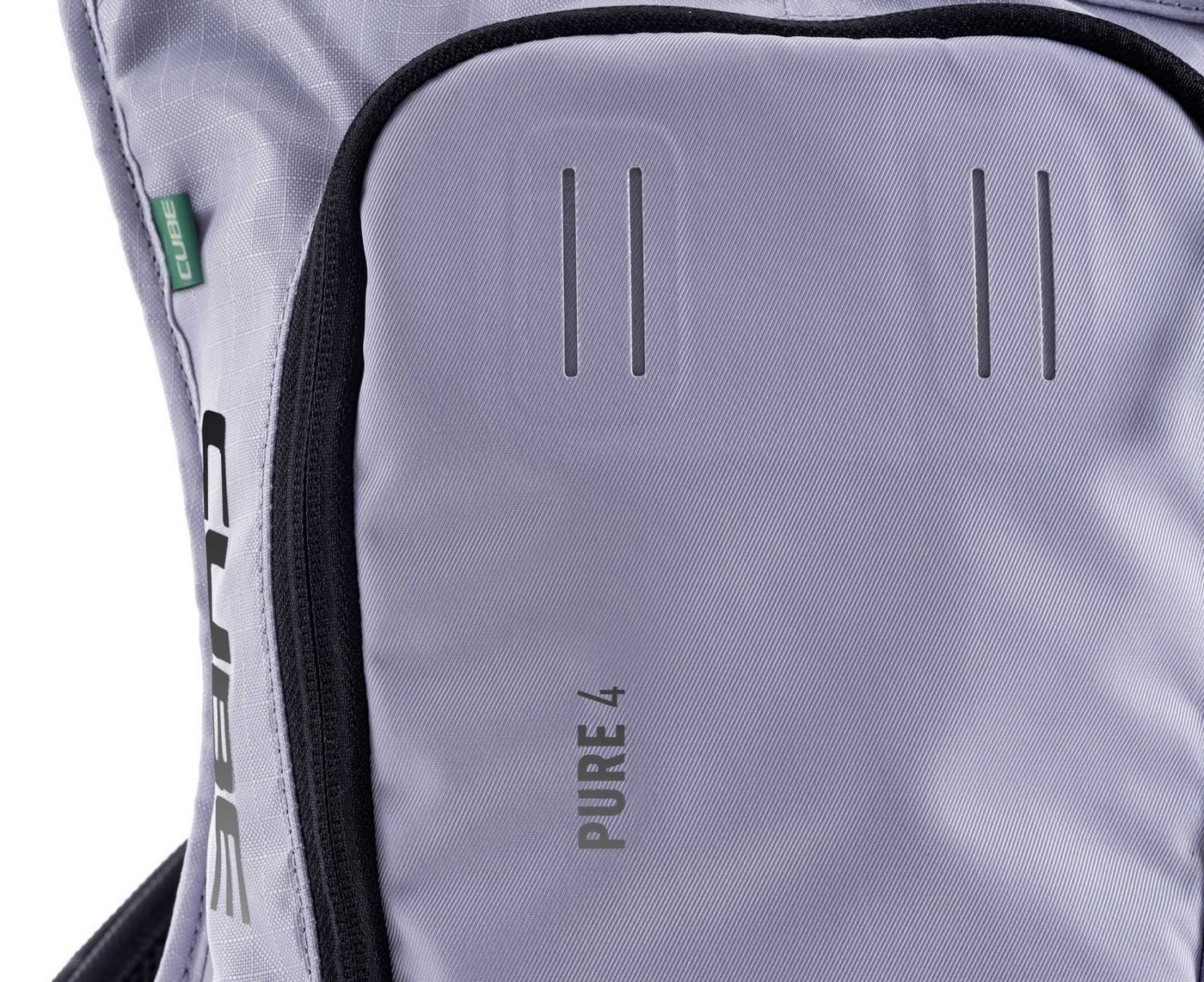Small and smart: the PURE 4 has everything you need from a backpack and nothing you don't. We pared it back to the essentials you'll need on shorter tours without having to carry extra weight. It's hydration system-compatible with outlets on both sides for the drinking tube, while mesh pockets in the main compartment keep everything neatly organised and are great for stashing bars, multi-tools and other small items. A side zip pocket keeps your smartphone or other essentials safe and within easy reach. We also incorporated our X-Shape shoulder system that fastens across the chest, so the backpack stays comfortable and stable without cutting into your stomach, leaving you to breathe freely while you sweat the climbs or rail the trails. The backpack also features the versatile MOLLE system, so it's easy to securely attach the small CUBE GEAR BAG 1 using the integrated touch fasteners for practical extra storage.