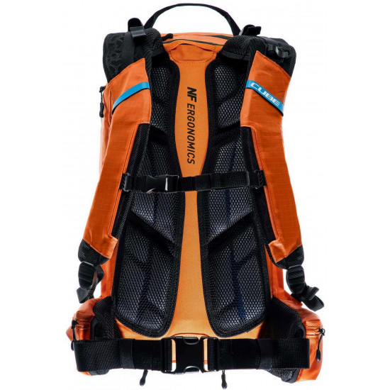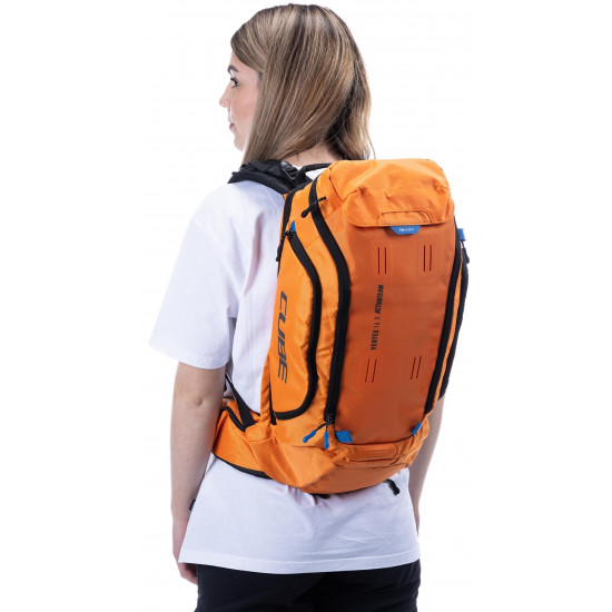 Enduro fans listen up! The vertex 16 x actionteam is our high-class backpack that's absolutely rammed full of practical features. An optimal fit courtesy of ergonomic shoulder straps, hip straps and cube's own nf ergonomics back system developed in-house adds up to a backpack that stays put no matter how hard you shred. We also added padding and ventilation so your back stays comfortable and fresh. The vertex 16 includes a sas-tec lb-l protector weighing in at a feather-light 150 g. We also included a protector strap, helmet carrier, goggle compartment and rain cover for maximum practicality. Internal compartments, a hip pocket, a smartphone pocket and two side tool compartments keep everything organised while you session the trails. And we also made it hydration system-compatible because that's how we roll! What's more: instead of a standard black lining, we used a contrasting colour to make it easier and faster to find what you need.