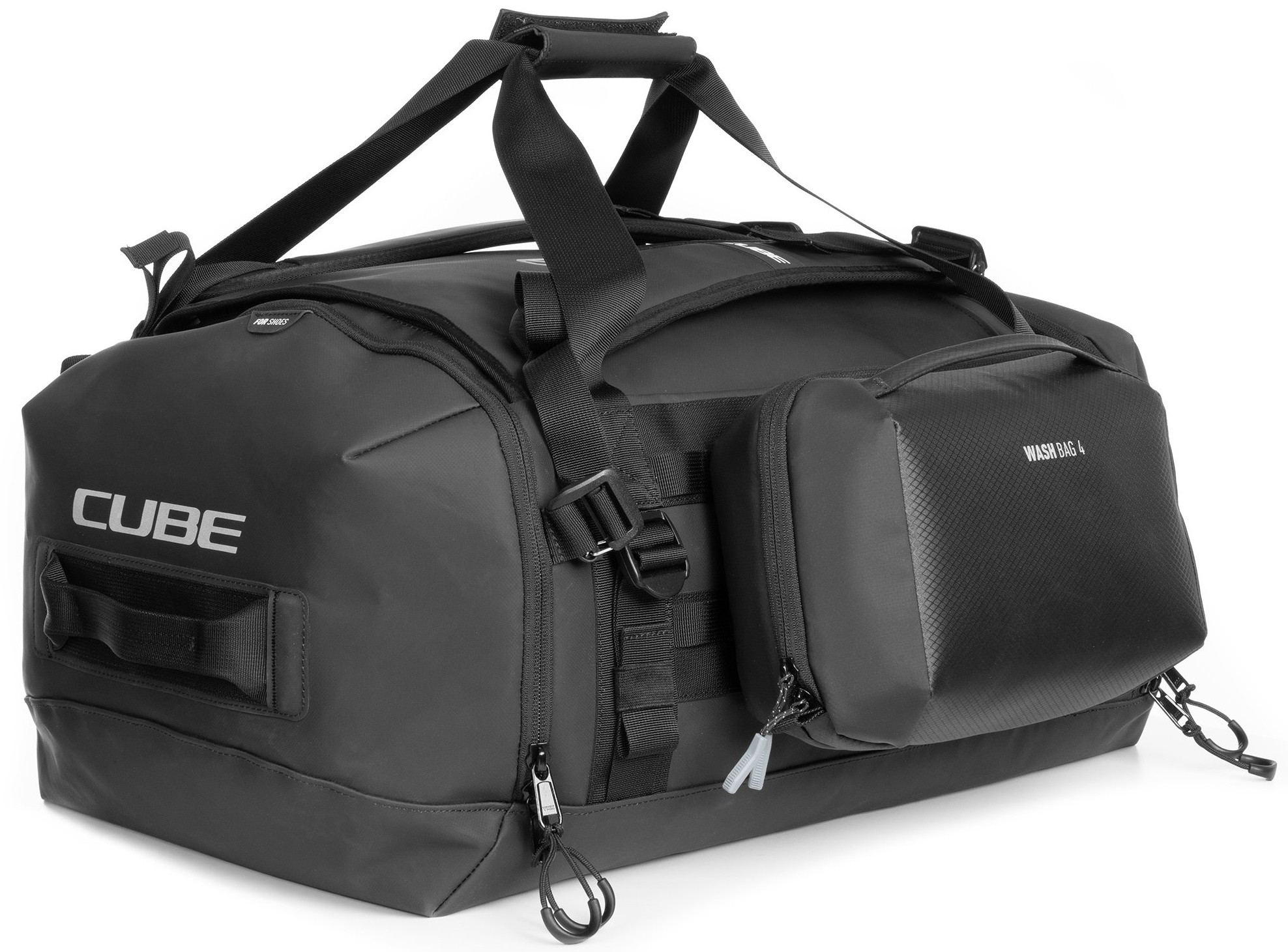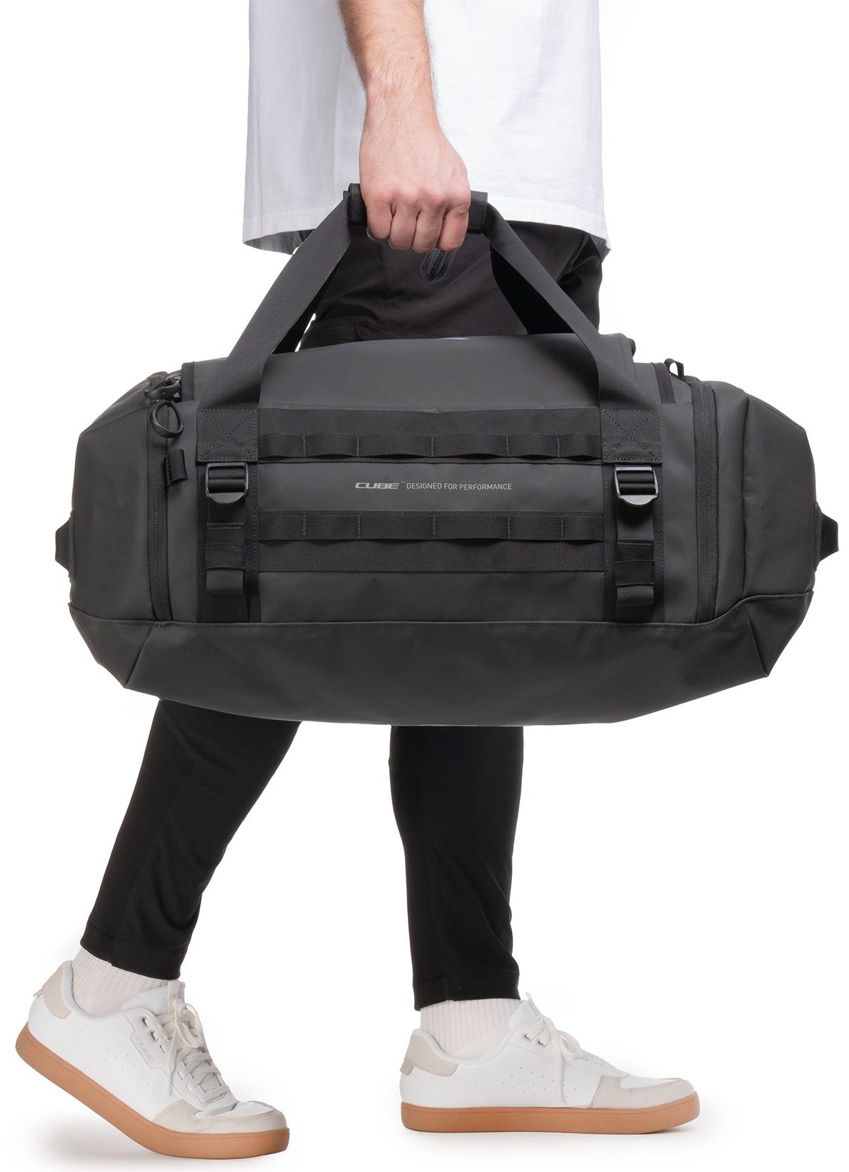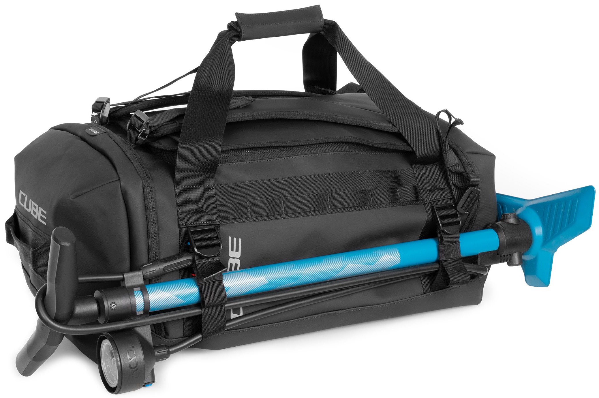 The CUBE Duffle Bag 60 is the perfect companion for travel, bike parks, training camps or race weekends. Removable shoulder straps allow for flexible carrying options, while the integrated MOLLE system offers additional attachment points for CUBE accessory bags, including the CUBE Wash Bag 4. A practical, foldable changing mat makes it easy to change on the go, and separate compartments for your helmet and shoes keep everything organised. Built from durable materials, this bag stands up to heavy use and reliably protects your gear – no matter where your adventure takes you.