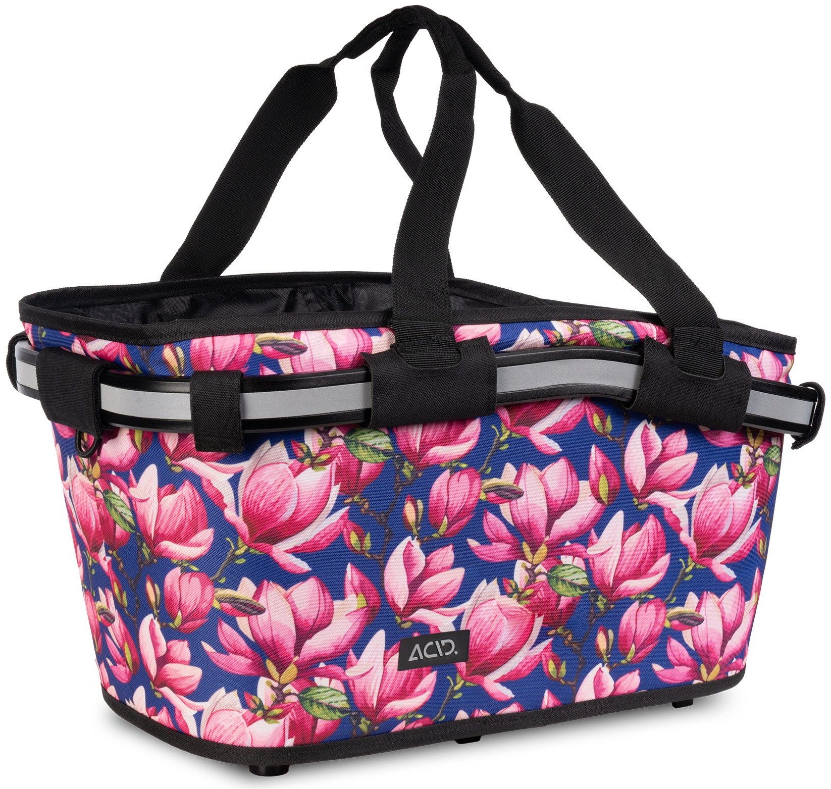 The ACID Handlebar Basket CITY 20 RILink is a reliable companion on all your journeys. It effortlessly transports your shopping from A to B. The practical cover with drawstring protects the valuable cargo and the zipped inner pocket offers space for valuables. The reflective elements provide additional safety in low-light conditions.