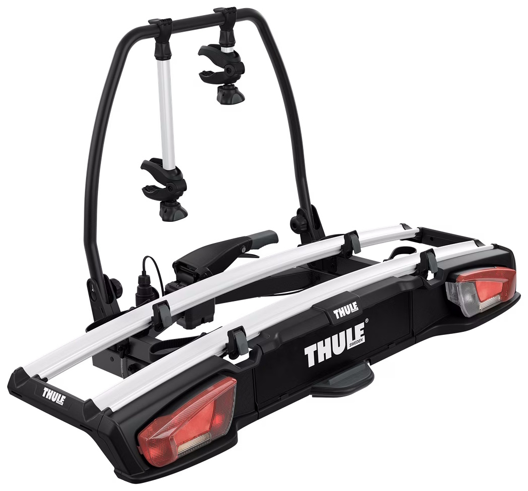 The versatile bike rack for all types of bikes from e-bikes and fatbikes to small childrens bikes.High load capacity enabling transport of e-bikes and heavy mountain bikesExtra-wide between wheel holders (25 cm) for the easiest mounting of sturdy bikesPossible to increase the load capacity to 3 bikes by adding Thule VeloSpace XT Bike AdapterExtra-long wheel trays enabling transport of large bikes (up to 1300 mm wheelbase).Adjustable pump buckles with extra-long wheel straps for easy fastening of wheels (up to 4.7" wheels) enabling transport of fat bikesEasy mounting of bikes through detachable bike arms with Thule AcuTight torque limiter knobs that click when optimal torque is reachedEasy mounting and adjustment of the bike rack before closing the tightening handle, thanks to the towbar couplings initial stabilityEasy trunk access even with bikes mounted, thanks to smart foot pedal tiltLock your bikes to the bike rack and your bike rack to the towbar (locks included)Combine with Thule BackSpace XT to create an all-round cargo carrier, giving the car 300L of easily accessed, extra loading spaceIMPORTANT: Please check compatibility before buying - https://www.thule.com/en-gb/gb/buyers-guideMax number of bikes: 2 ( 3 with adapter)Load capacity: 60 kgMax bike weight: 30 kgSize: 135 x 69 x 79 cmFolded dimensions: 135 x 74 x 25 cmWeight: 18.7 kgFits frame dimensions: 22-80 mmDetachable frame holdersDistance between bikes: 25 cmCarbon frame compatible (Adapter/s required: Thule Carbon Frame Protector)Wheel mounting on adjustable holders: Pump bucklesTilt function (with bikes)Does not fit cars with exterior spare tyreRear lightsPower connector: 13-pinOne Key System compatibleLockable bike-to-rackLockable rack-to-vehicleAccessories for Thule VeloSpace XT 2 (not included, can be ordered separately):Thule VeloSpace XT Bike AdapterThule Loading Ramp XTThule BackSpace XTThule BackSpace XT 3rd Bike ArmThule Transport WheelThule Carbon Frame ProtectorThule XXL Fatbike Wheel StrapsThule Bike Frame AdapterThule Adapter 9906Thule Number PlateThule Wheel Strap LocksThule One-Key System 4-pack