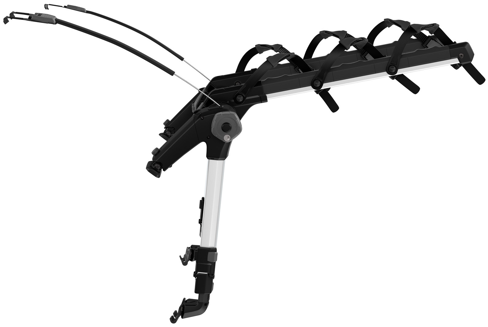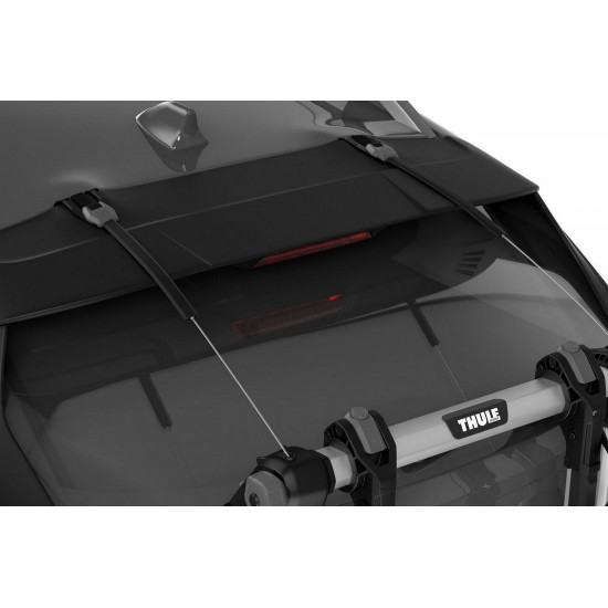 Maximum fastening security to your vehicle with steel cables Quick and easy mounting to car thanks to simple user interface and intuitive torque limiting tightening system Firm carrier hold and vehicle protection with twin hook attachment and rubber protection pads Bike protection and security with soft cradles that absorb road shock and vibrations Vehicle and bike protection with integrated anti-sway system that prevents bike-to-bike and bike-to-vehicle contact Accommodates a variety of bike frames/geometries including smaller kids bikes with thanks to adjustable bike arms Locks the bikes to the bike rack and the bike rack to the car (locks included) Bike arms fold down when not in use, and rack folds flat for easy transport and convenient storage Easy to assemble with included tools Possible to open vehicle trunk without any mounted bikes This product does not have a universal fit. Please use the Thule Buyer's Guide for information related to specific car models Max number of bikes: 3 Load capacity: 45 kgMax bike weight: 15 kgDimensions: 80 x 78 x 84 cmFolded dimensions: 24 x 78 x 69 cmWeight: 8.9 kgFits all standard frame dimensionsDistance between bikes: 18 cmCarbon frame compatibleRear lights and number plate are not visible with bikes mounted (required number plate / lightboard adapter - NOT INCLUDED)One Key System compatibleLockable bike-to-rack and rack-to-vehicle
