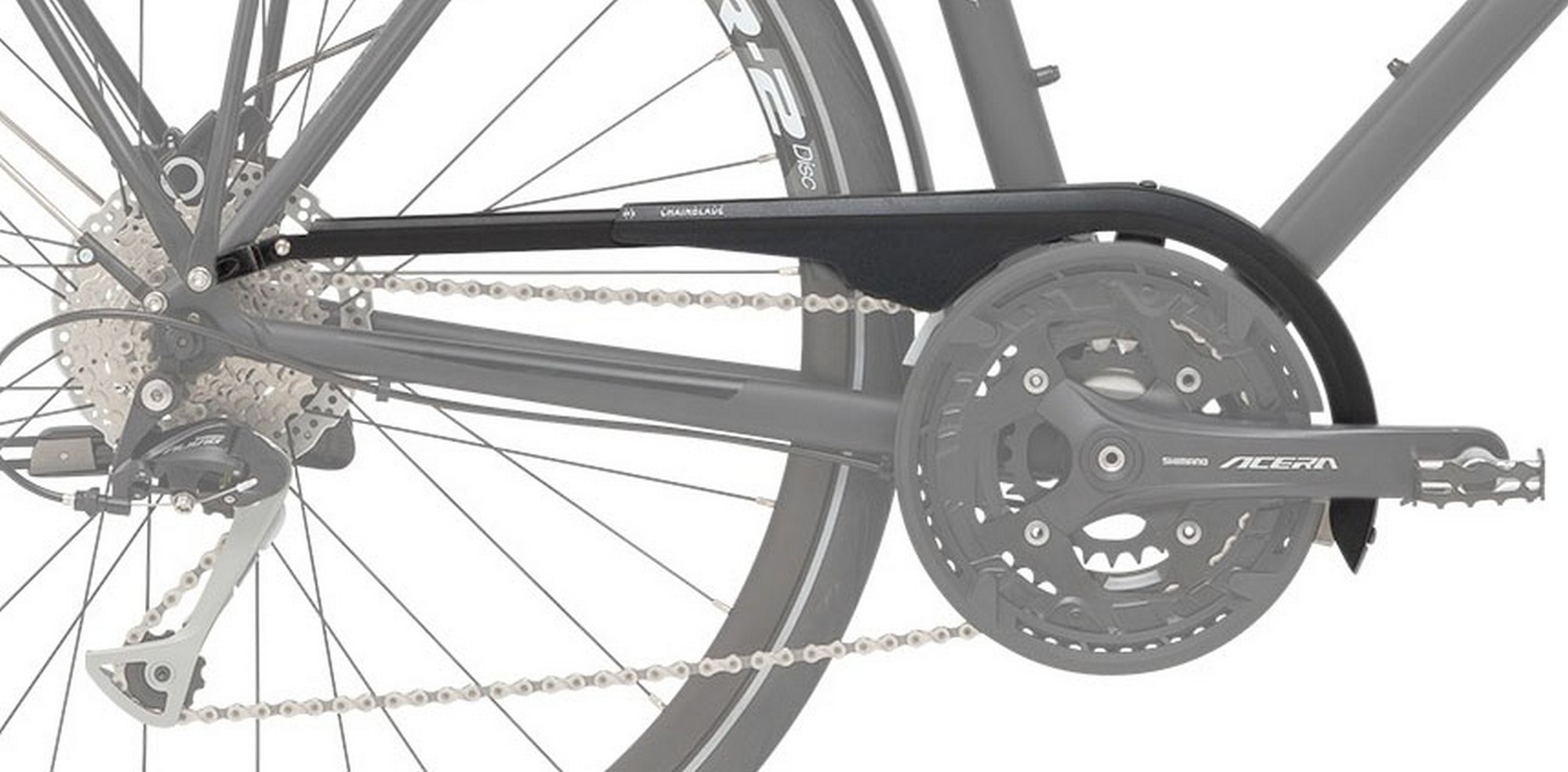 Reliably protects chain and trousers. Thanks to an adjustable profile, the SKS Chainblade covers the entire chain case of your bike. The chainguard made from robust and impact-resistant plastic and is suitable for 42/44 teeth chainring (175 mm) . As the mount for the chain case is fitted behind the right bottom bracket cup, a bottom bracket tool is required.
