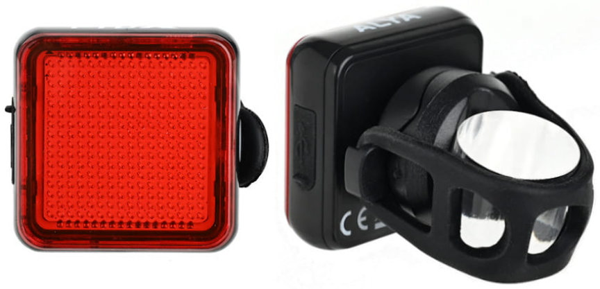 - Rear bike light, charged via USB-C