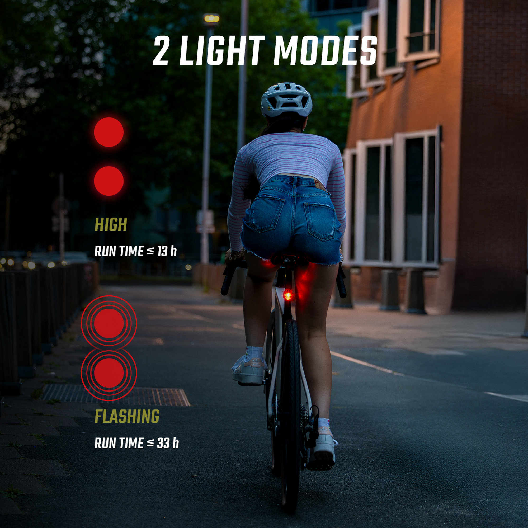 - VISIBLE FROM ALL SIDES The NYTE 10 ensures that you are also clearly visible from the side. The rear light shines at a 240 degree angle and makes you even more visible. An important safety feature, especially in city traffic.