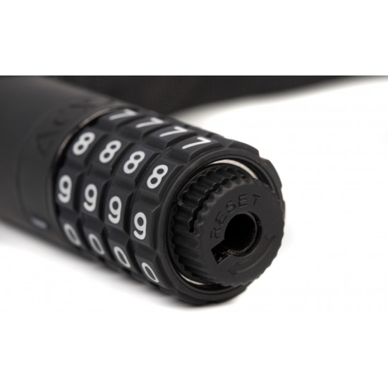 The extra-secure chain lock in our corvid c range is virtually noiseless yet incredibly sturdy with a tear-resistant, hard-wearing textile sleeve. A rubberised surface prevents corrosion and protects your frame against scratches. Grip+ technology on the lock body and combination wheels ensures maximum grip. Personalisable combination.