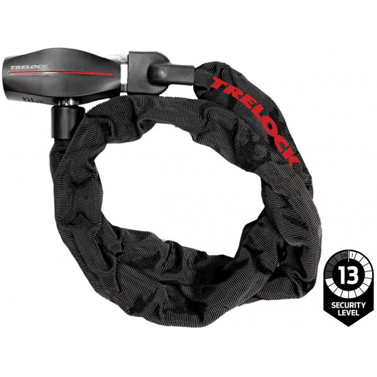 TRELOCK Security Security and quality. The number of bicycle thefts is on the increase and only every tenth bicycle is eventually returned to its original owner. However, cyclists investing in a good lock reduce the risk of their bicycle being stolen. With its bike lock solutions, TRELOCK offers customers more than just security for their bicycles. Innovative additional solutions provide the cyclist with increased security and convenience. Modern cylinder technologies and high-quality materials produce reliable bicycle locks and as an added plus also reduce the weight of the lock. The chain lock BC 480 is an all-rounder amongst the TRELOCK chain locks: with a length of 110 cm it offers sufficient locking range to connect the bike or e-bike to a stationary object, the 8 mm thick chain links provide good theft protection in relation to the weight. The flexible hardened steel chain is protected by a resistant textile sleeve.