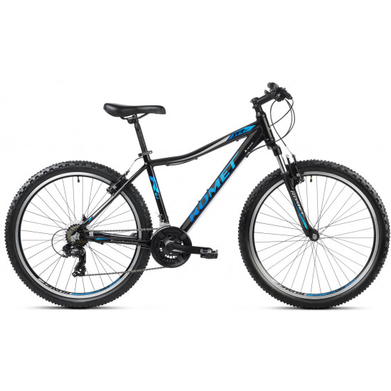 The ROMET MTB collection offers versatile recreational bikes for people who plan routes on mountain paths and difficult areas, where you need wider tires. These are versatile machines designed for beginning fans of riding in mountainous terrain or woodland. While adults can enjoy affordable MTB bikes that are strong and reliable, it's also perfect for young cyclists due to the variety of 27.5" and 26" wheel models with small frame sizes. Based on aluminium frames with a classic design, the MTB series bikes are equipped with proven components from Shimano, SunTour, and other manufacturers to ensure reliable performance for years to come. Aluminium frame with a front shock absorber, 26-inch aluminium wheels and a reliable drivetrain with a large gear range to efficiently navigate a variety of terrains. Tyres ensure that the bike grips the pavement with confidence, while also moving efficiently on asphalt. ROMET MTB bikes stand for excellent value for money, refined design and simplicity of solutions.