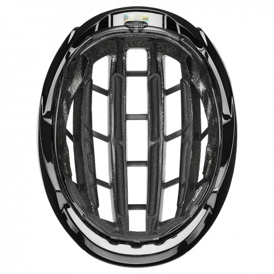 The uvex surge sets a new benchmark in terms of ventilation, as it was developed together with the professionals from the Intermarché-Wanty team and ex-professionals from international cycling. The open construction with foamed-in cage ensures excellent air circulation - without compromising on safety. The inseparable combination of the shock-absorbing EPS inner layer and several polycarbonate outer layers generates a high level of stability and low weight at the same time. An optionally available, attachable aero cover covers part of the openings. Computer simulations, tests on the track and in the wind tunnel confirm the significantly reduced air resistance - ideal when every second counts. Top: Cycling goggles sit securely in the practical goggle garage. uvex surge - top technology for top performance.