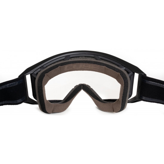 Maximum performance for your toughest descents: The CUBE DH Goggle delivers an ultra-wide field of view while strategically placed vents keep your head cool even on the most demanding downhill courses. Comfort and stability are ensured by the soft triple-layer face foam combined with the MonoLink Outrigger, which distributes pressure evenly across the face. The SnapShift Lens System allows for quick and tool-free lens changes. The lens features both anti-fog and anti-scratch coatings, ensuring crystal-clear vision in every situation. The 45 mm wide, silicone-backed strap offers a secure fit and integrates seamlessly with the CUBE DESCENDER full-face helmet. With StrapLock Technology, the strap is attached cleanly and securely to the outrigger - for maximum stability and a sleek look. Comes with a protective goggle pouch for transport.