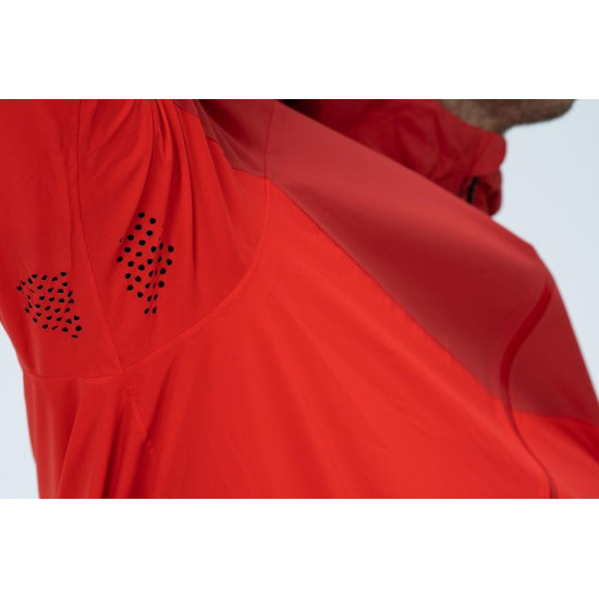 No more bad weather excuses – the ATX Storm Jacket is here! DWR coating and waterproof technical fabric constructed from 2.5 layers do a great job at keeping out the cold wind and rain so there's nothing holding you back. We also added a water-repellent front zip, an adjustable peaked hood and welded seams inside so water stands no chance of getting where it shouldn't. The pockets with hidden zip are the perfect place to stow your keys, smartphone etc. and reflective details provide added safety in low-light conditions. Perforation under the arms keep the air circulating when the trail heads uphill, whilst the drawcord hem can be adjusted to keep the warm air in and the cold air out – it's up to you!