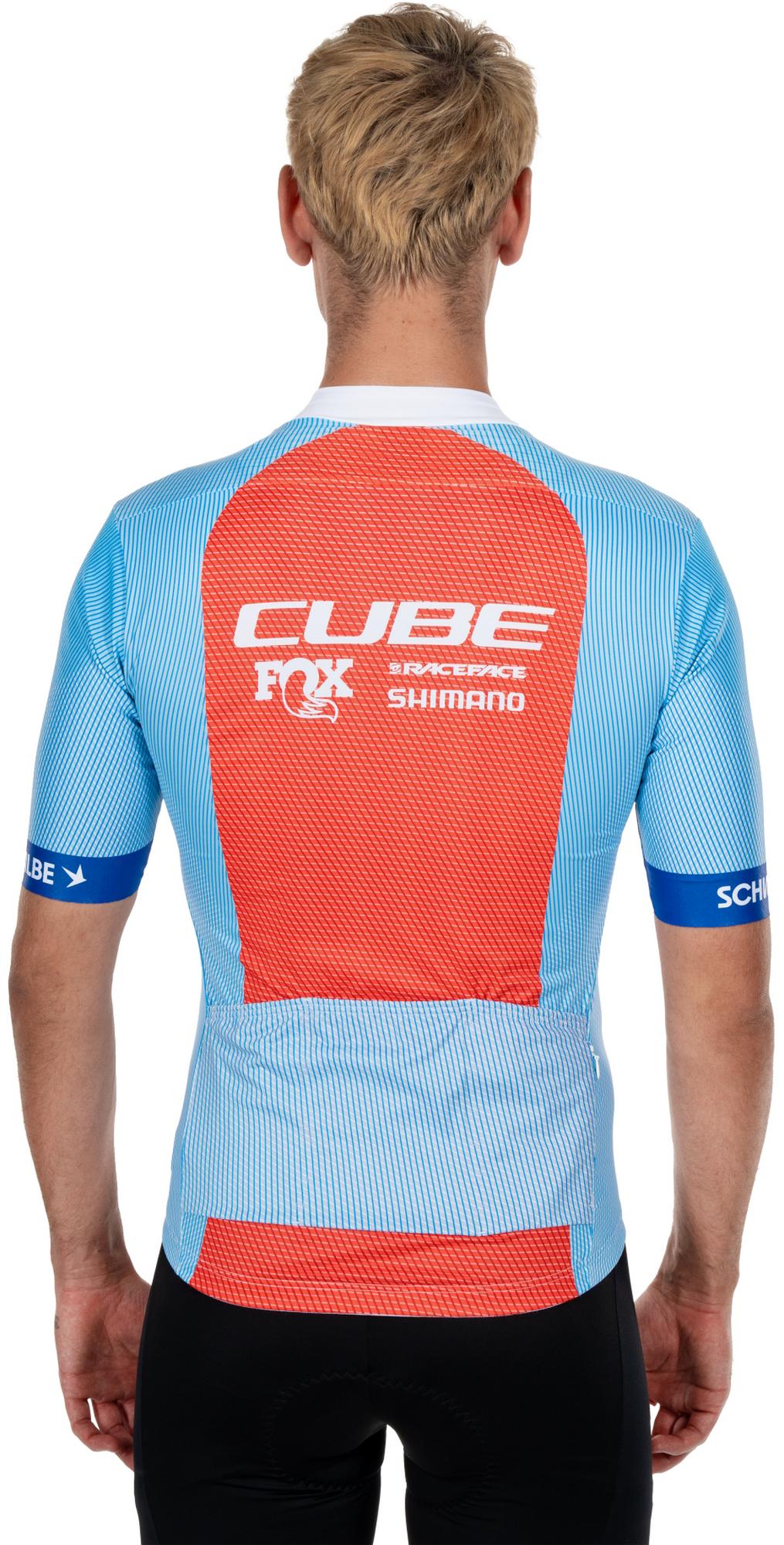Our cube road/xc short-sleeved jersey in an athletic, tight-fitting cut offers plenty of freedom of movement in the shoulder area. Thanks to the full-length zipper at the front, it is easy to put on and take off. The silicone-printed hem and pre-shaped collar guarantee a secure fit without letting in draughts. A side, waterproof zipper pocket is hidden in the 3-part back pocket - practical for valuables such as banknotes or smartphones.