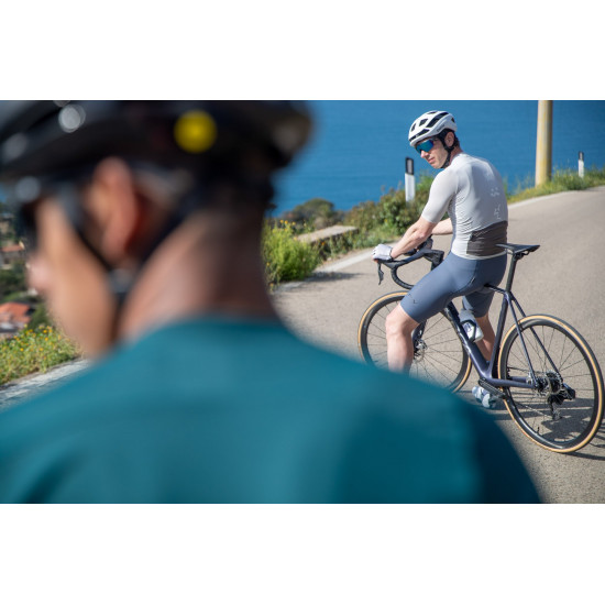 The elastic material mix ensures a flexible yet sporty fit of this road jersey. In addition, the colour-block design and tone-on-tone edging at the hem provide a modern style. The reinforcements on the back pocket are particularly practical and offer stability. The ergonomically cut flat collar also provides extra comfort, while the laser-cut edges give the bike jersey a neat touch.