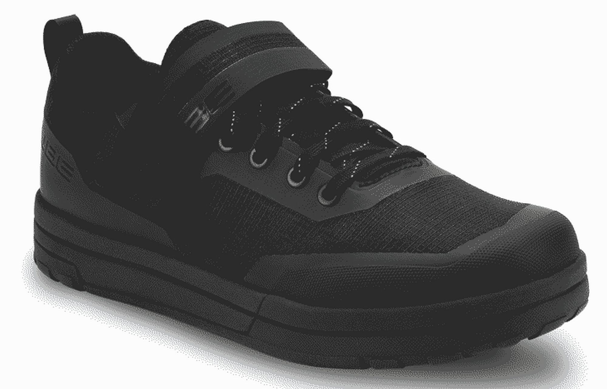 The cube strix pro shoe offers the best possible connection to the bike for demanding off-road riding. A new, super-sticky rubber compound "a-traction" for the sole provides excellent grip on flat pedal pins, even in the wet. The fiberglass-reinforced nylon shank gives ideal stiffness for efficient pedalling, whilst still offering enough flexibility for optimum bike control. A shock absorbent eva mid-sole and ergonomic insole work together to cushion the rider's feet for ride-all-day comfort, and there are slots to fit cleats for clipless pedals. The upper uses a combination of laces and a velcro strap for comfort, ease of taking on and off, and security. The toe box and heel cage are both reinforced for protection, and an extra-tough medial waist layer provides ankle protection and additional scuff resistance, whilst rip-stop fabric is tough and durable in the harshest of riding conditions.