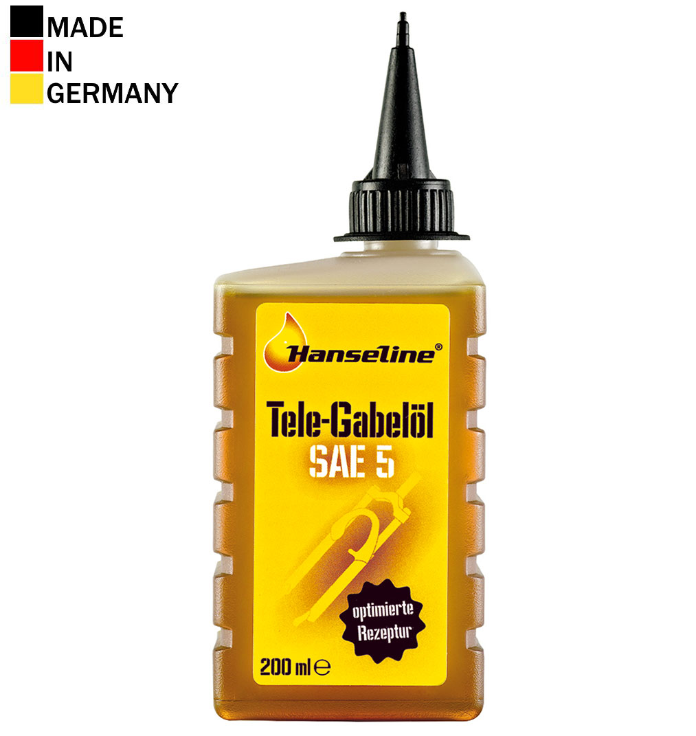 HANSELINE - pure biking! The brand, which is known for tradition and quality. Individual products for every purpose.Hanseline SAE5 is a special hydraulic oil for suspension forks with moderate travelProtects against corrosion and agingImproves damping propertiesReduces friction and wearDoes not damage sealsSAE5 viscosity ensures maximum fork performanceMeets all the requirements that are set by manufacturers of hydraulic suspension forksCan be used throughout the whole yearUsageFor filling your suspension fork, please contact your local dealer. Special tools are often necessary. Please refer to manufacturer's instructions before use.TYPE: liquidCAPACITY: 200ml bottleWith nozzleMade in Germanywww.hanseline.de