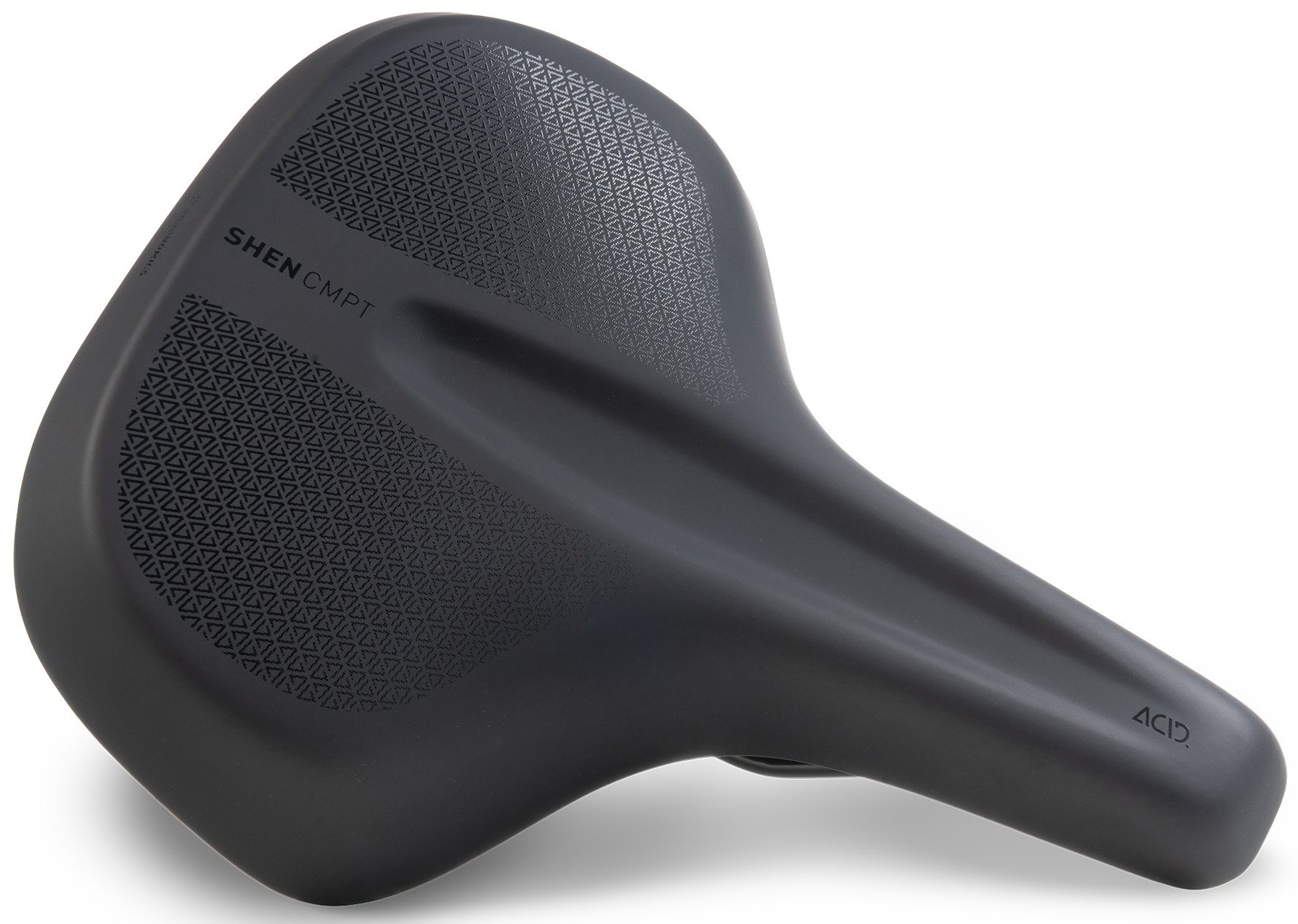 The ACID SHEN CMPT saddle is specifically designed for city use, offering high comfort and soft padding. The centrally placed ergo-relief channel and the ergonomically shaped saddle shell reduce pressure on the soft tissue and promote an ergonomic seating position. The durable PU cover ensures a comfortable seating experience, while the ergonomic shape provides maximum leg freedom and allows for a smooth pedalling motion. The saddle is optimised for an upright seating position.
