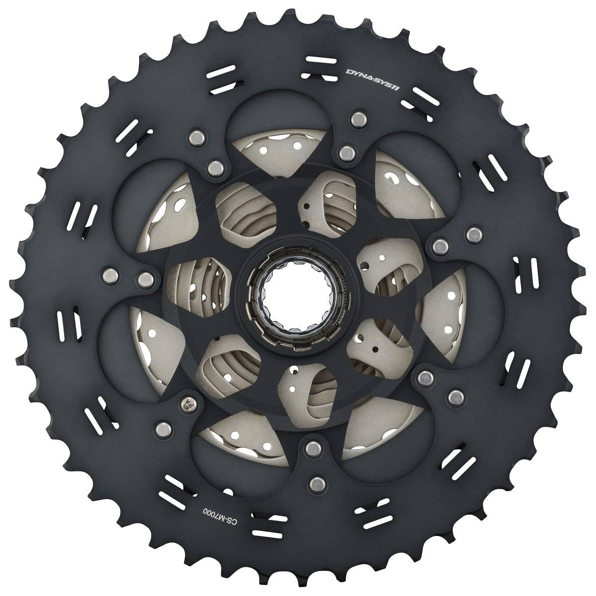 SHIMANO SLX M7000 11-speed Hyperglide cassette uses the lighter aluminium spider construction with aluminium and steel cogs. The lightweight 11-40 tooth cassette weighs only 467 g, and the wider 11-42 tooth version provides an extremely wide gear range, minimizing weight. Ride anywhere with smooth and precise gear changes. An extra-wide 11-46 is now also available!