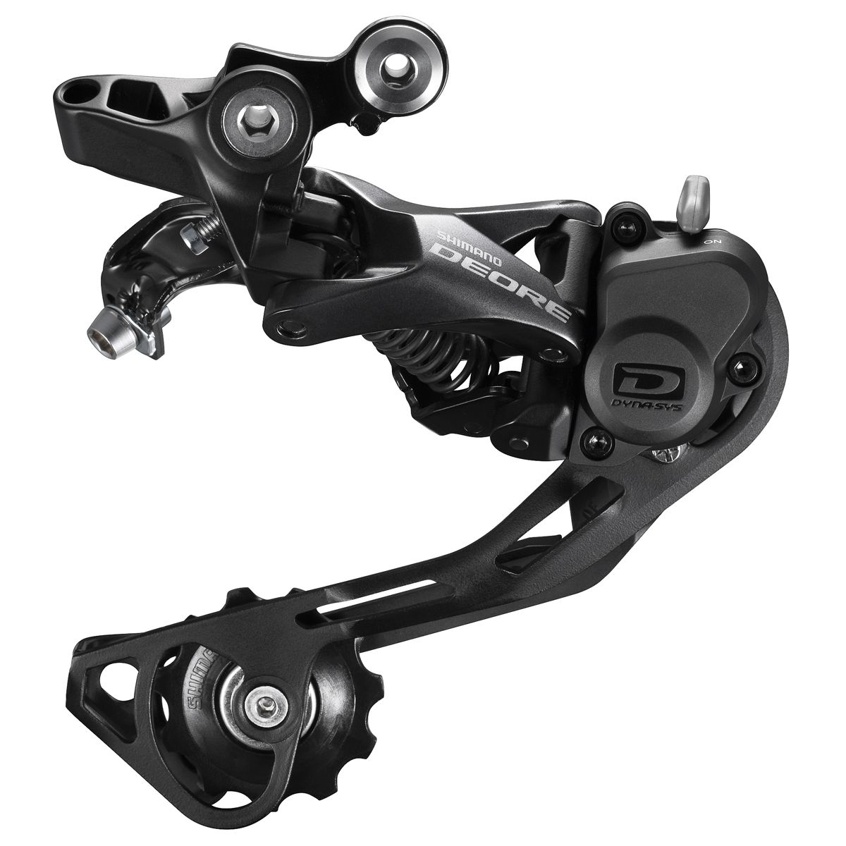 Sometimes the difference between cleaning a section or not is a well-timed, perfectly executed shift. Where shift levers command, derailleurs respond. Now featuring at Deore lever, Shimanos SHADOW RD+ technology provides sharp and silky shifts along with chain stability and a reduction in chain slap thanks to a lockable rear derailleur position. The medium cage 10-speed rear derailleurs (RD-M6000 GS) for 1x10- and 2x10-speed systems offer a drivetrain capacity of 41-teeth. SHIMANO presents the drivetrain technology for mountain bikes: DYNA-SYS. This revolutionary technology uses a 10-speed cassette, but that is not the only feature of this system. Highlight is a completely redesigned drivetrain that creates real added benefits for the rider. SHADOW RD+ - less distraction quiet drivetrain. Rear Derailleur Stabilizer reduces chain slap. Simple solution for chain drop. Lighter and more efficient than roller-type chain device.