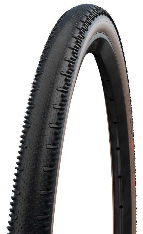 Compared to the G-ONE R, the RS has 20% less rolling resistance - for maximum speed, Schwalbe's developers have opted for a semi-slick version. The inspiration for the matching grip came from the cross tire X ONE Speed - so the slightly angled side blocks can be found on the tire, which provide maximum grip or braking performance depending on the rolling direction.