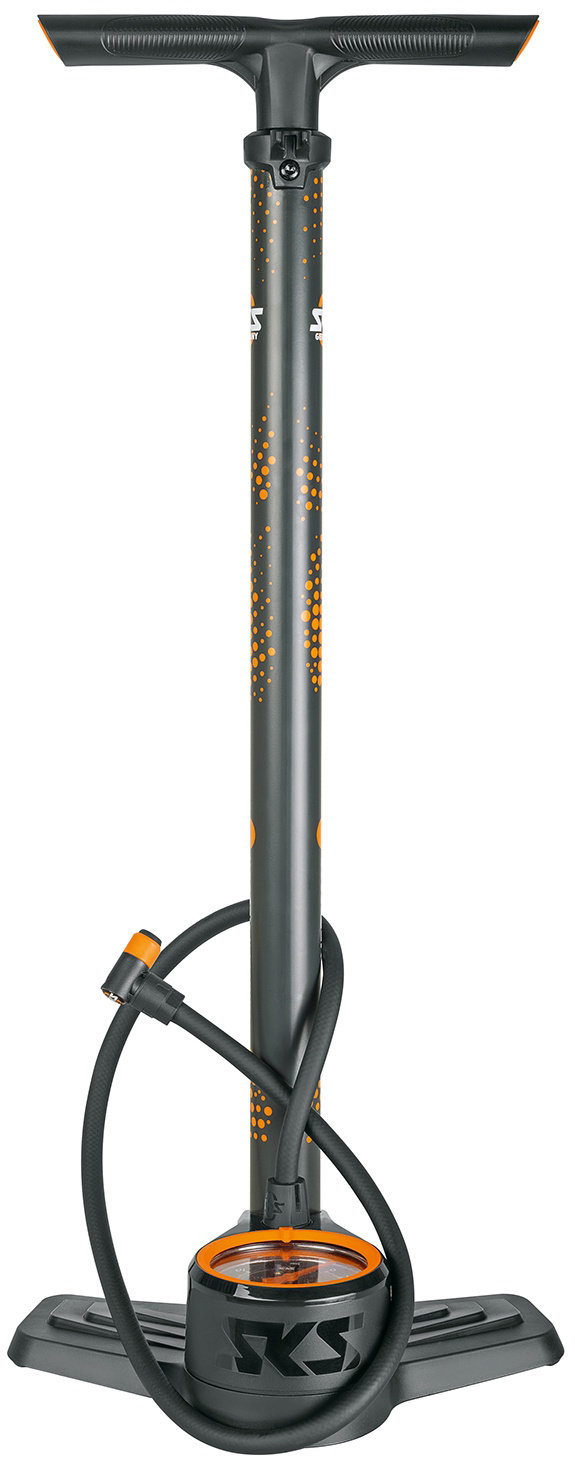 A large precision pressure gauge ensures exact pressure control. The extra-long high-pressure hose offers flexible freedom of movement when pumping. The robust steel tube and stable plastic foot ensure stability. The scope of delivery includes valve inserts for SV and DV valves (2 pieces each), a valve key and four dust caps.
