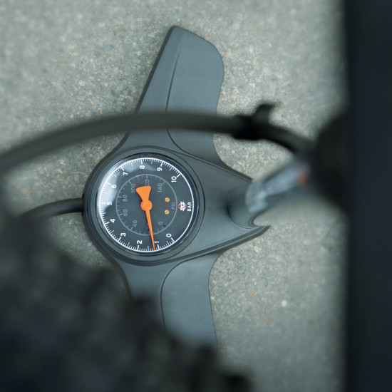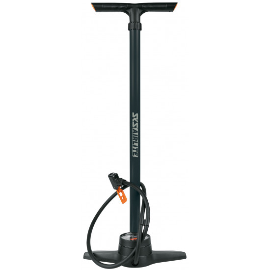 The SKS AIRLITE floor pump combines high-quality materials with sophisticated functionality. The large precision pressure gauge allows optimum readability of the tyre pressure up to 10 bar. With its steel tube and robust plastic base, the floor pump guarantees excellent stability while pumping. The ergonomically shaped handle provides a secure grip and makes it easier to operate.