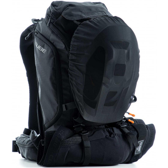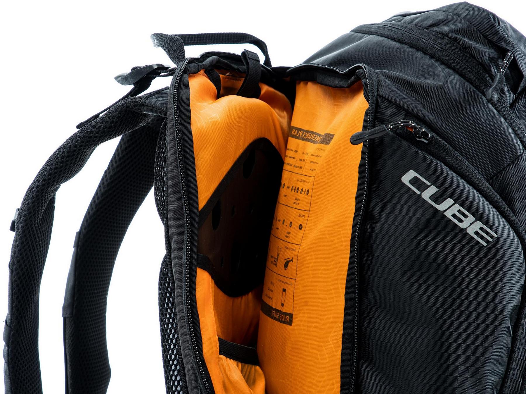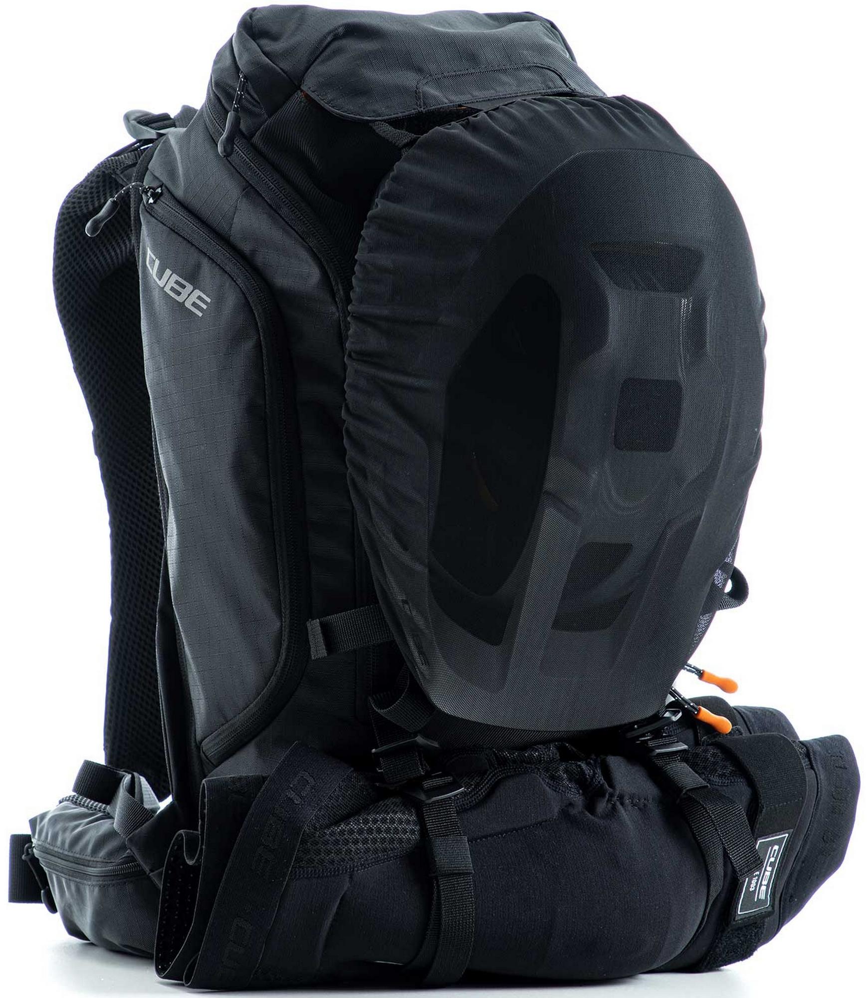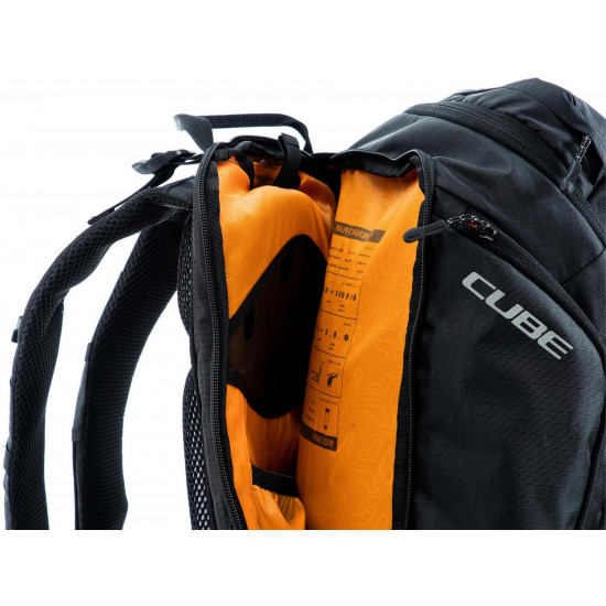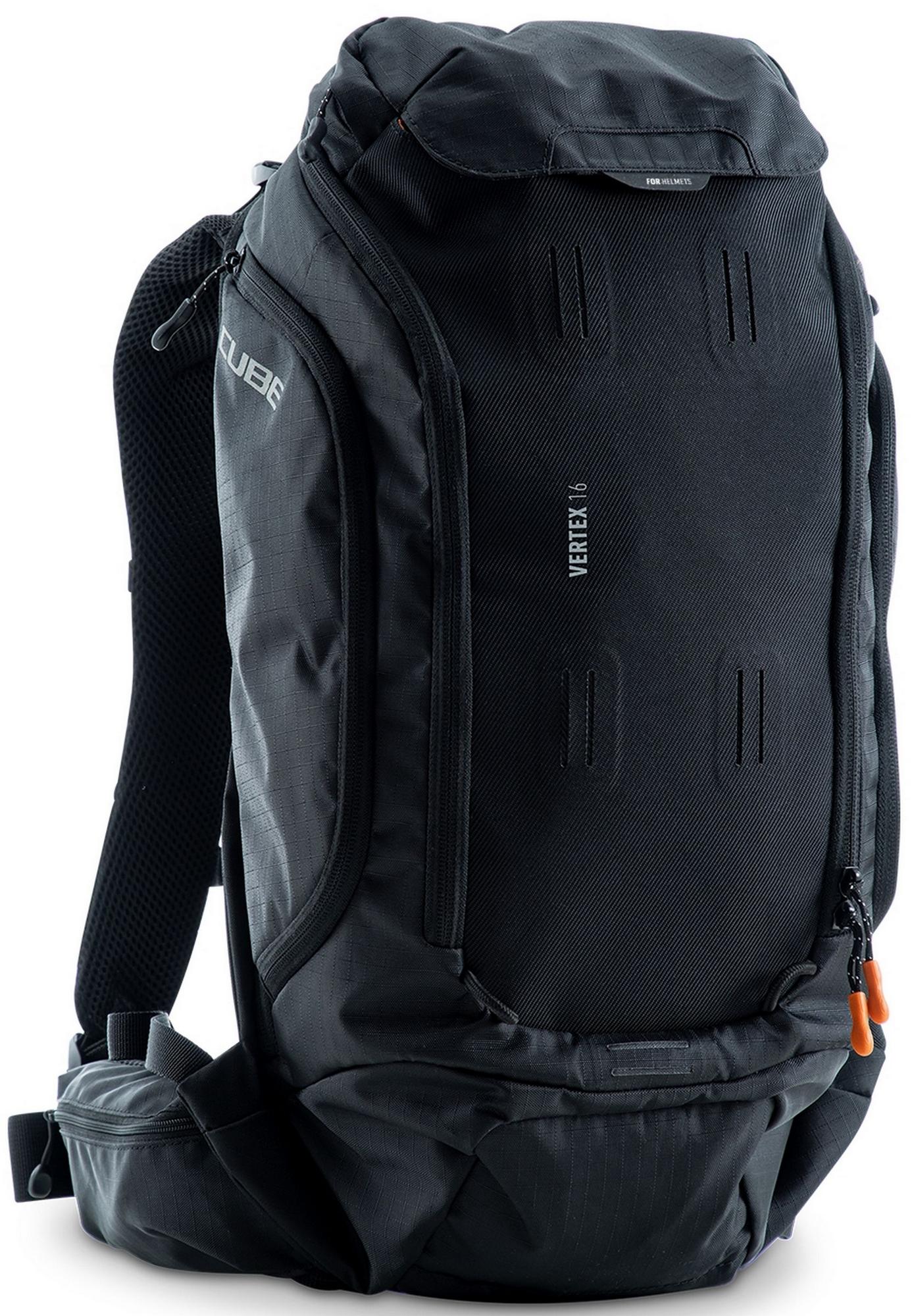 Enduro fans listen up! The vertex 16 is our high-class backpack that's absolutely rammed full of practical features. An optimal fit courtesy of ergonomic shoulder straps, hip straps and cube's own nf ergonomics back system developed in-house adds up to a backpack that stays put no matter how hard you shred. We also added padding and ventilation so your back stays comfortable and fresh. The vertex 16 includes a sas-tec lb-l protector weighing in at a feather-light 150 g. We also included a protector strap, helmet carrier, goggle compartment and rain cover for maximum practicality. Internal compartments, a hip pocket, a smartphone pocket and two side tool compartments keep everything organised while you session the trails. And we also made it hydration system-compatible because that's how we roll! What's more: instead of a standard black lining, we used a contrasting colour to make it easier and faster to find what you need.