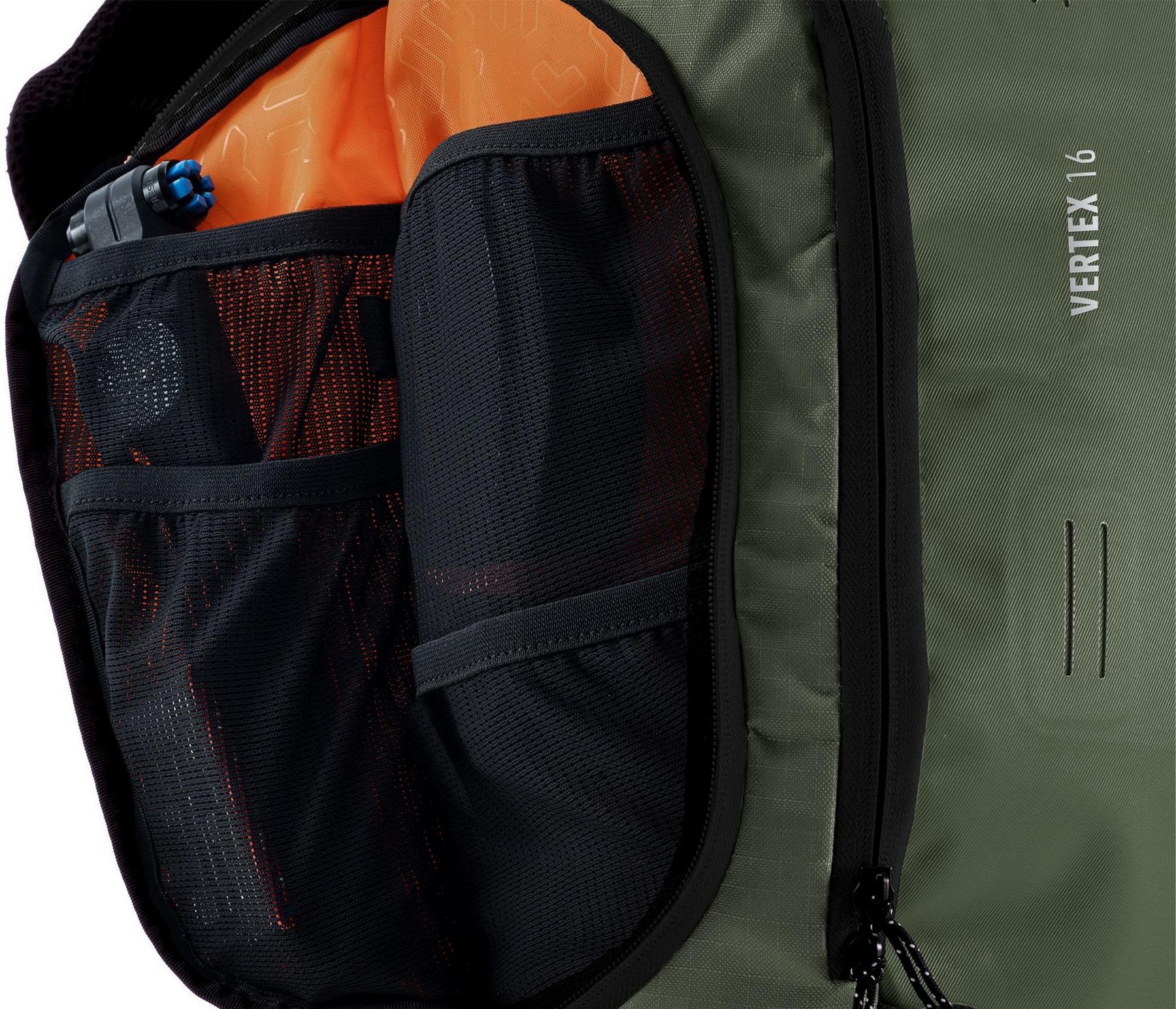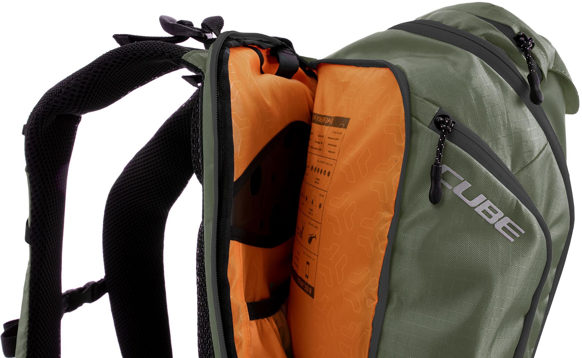 Enduro fans listen up! The vertex 16 tm is our high-class backpack that's absolutely rammed full of practical features. An optimal fit courtesy of ergonomic shoulder straps, hip straps and cube's own nf ergonomics back system developed in-house adds up to a backpack that stays put no matter how hard you shred. We also added padding and ventilation so your back stays comfortable and fresh. The vertex 16 includes a sas-tec lb-l protector weighing in at a feather-light 150 g. We also included a protector strap, helmet carrier, goggle compartment and rain cover for maximum practicality. Internal compartments, a hip pocket, a smartphone pocket and two side tool compartments keep everything organised while you session the trails. And we also made it hydration system-compatible because that's how we roll! What's more: instead of a standard black lining, we used a contrasting colour to make it easier and faster to find what you need.