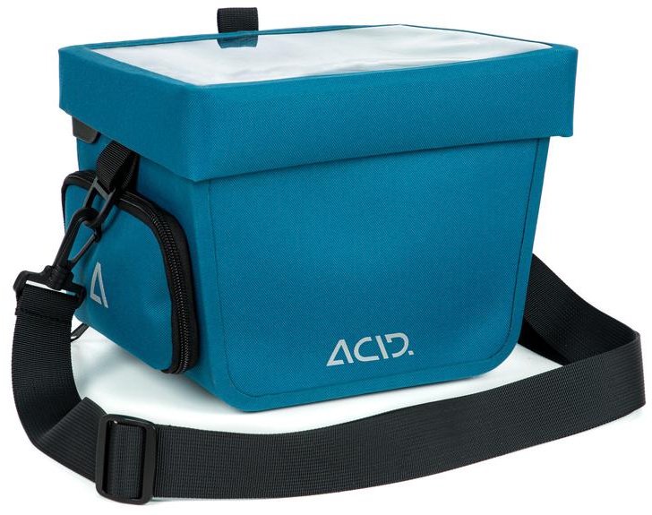 The functional, waterproof Handlebar Bag PRO 7 comes with the ACID FILink system for quick, secure attachment. A convenient shoulder strap takes it from rack to shoulder with ease. And the integrated window with touchscreen function means there's no need to take out your smartphone every time you need to check your messages or route. There's even a fold-out side pocket to stow your drinking bottle within easy reach at all times. Reflectors add visibility in all conditions.