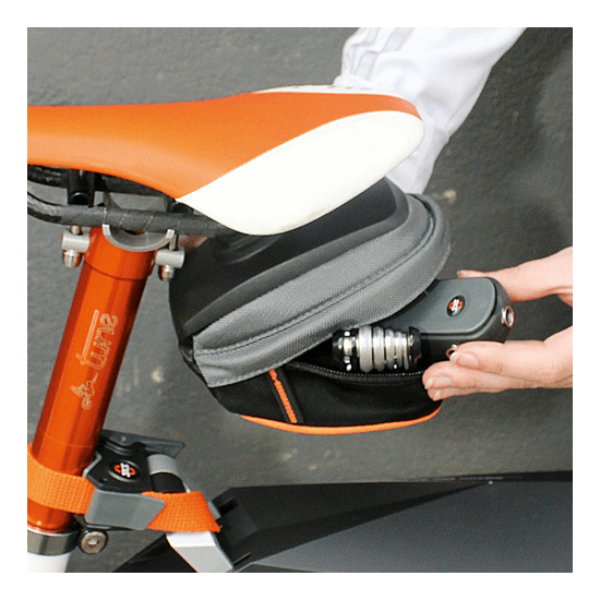 The SKS RACE BAG XS can easily be attached to the saddle rails with no tools. A separate compartment inside for a multi tool and water resistant material ensure all items are protected.