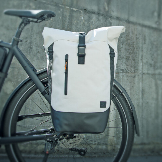 The roll-top with zipper and magnetic clip makes the INFINITY URBAN SIDEBAG flexible and adjustable in size. High-quality materials made from waterproof fabric and welded zippers protect the contents from wind and weather. Other features include the padded laptop compartment (up to 15"), the reinforced back and bottom of the bag, a quick-access outer compartment and sewn-in reflective strips on the sides. The side bag can be removed from the carrier in a single movement and used as a shoulder bag thanks to the shoulder strap.