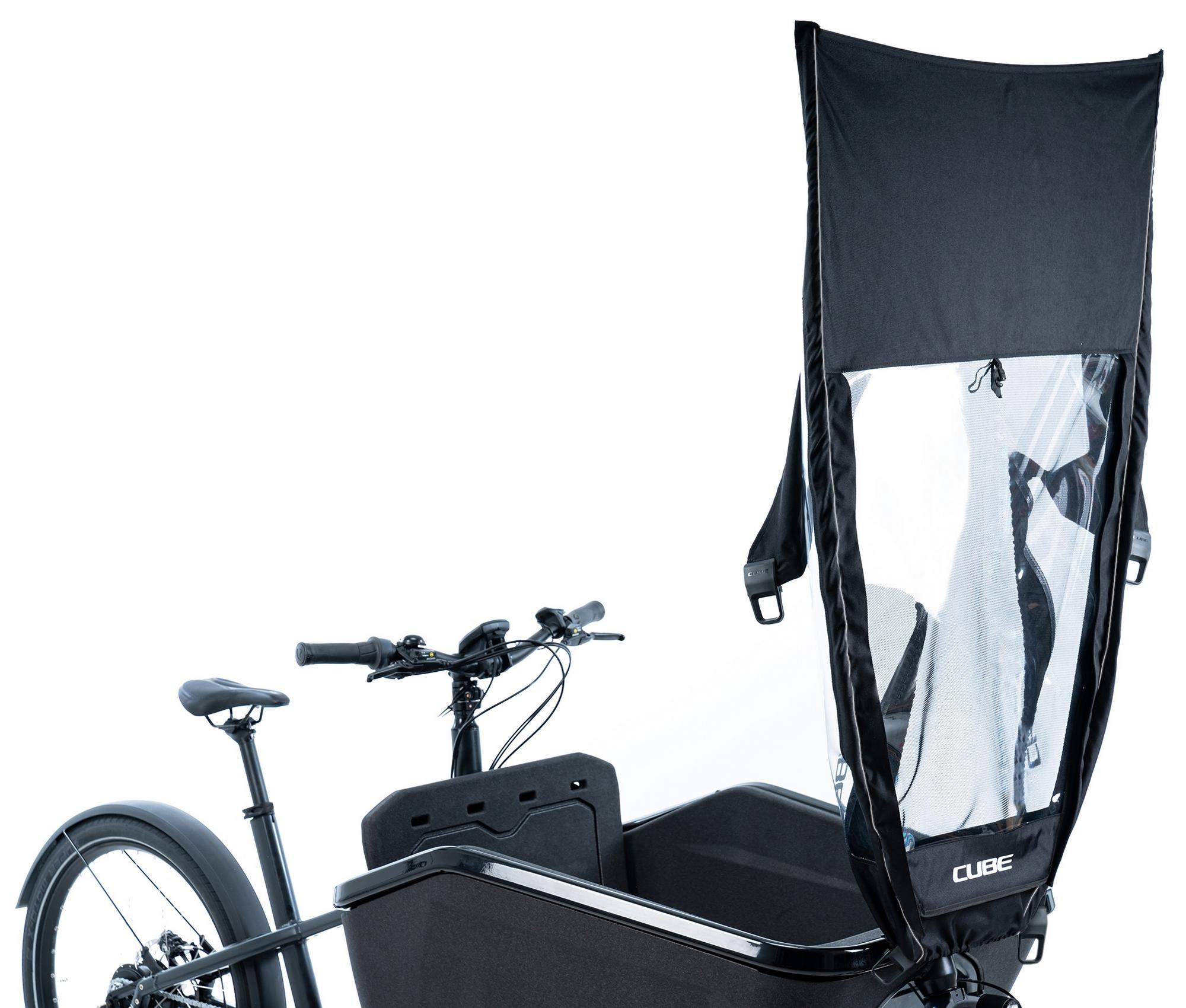 Real cyclists aren't put off by bad weather – especially when they've got the temptation of the cube cargo! Keep cargo loads and small passengers dry with our water-resistant rain cover. The fly screen keeps out the creepy crawlies and the pvc window lets light in (both roll-up). Includes functional and sturdy metal screw clips and fiberglass rods with connectors.