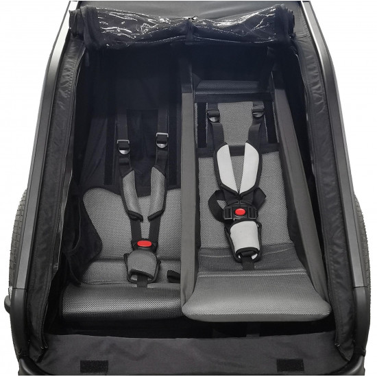 With the cube baby seat, you can even take your youngest kids safely and comfortably in the bike trailer. The baby seat fits perfectly in the double cmpt bike trailer.