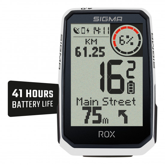- READY TO GO AT ANY TIME! The ROX 4.0 ENDURANCE bike computer can be positioned directly on the handlebars in a few easy steps entirely without cables or sensors. If you want, you can connect your Rox 4.0 ENDURANCE to additionalsensors for measuring speed, heart rate, and cadence. Your ROX uses GPS and GLONASS to determine your position within a few seconds of being switched on. The user-friendly operation with three buttons enables you to start a bike tour right away. You can use the SIGMA RIDE app to set your individual display views.