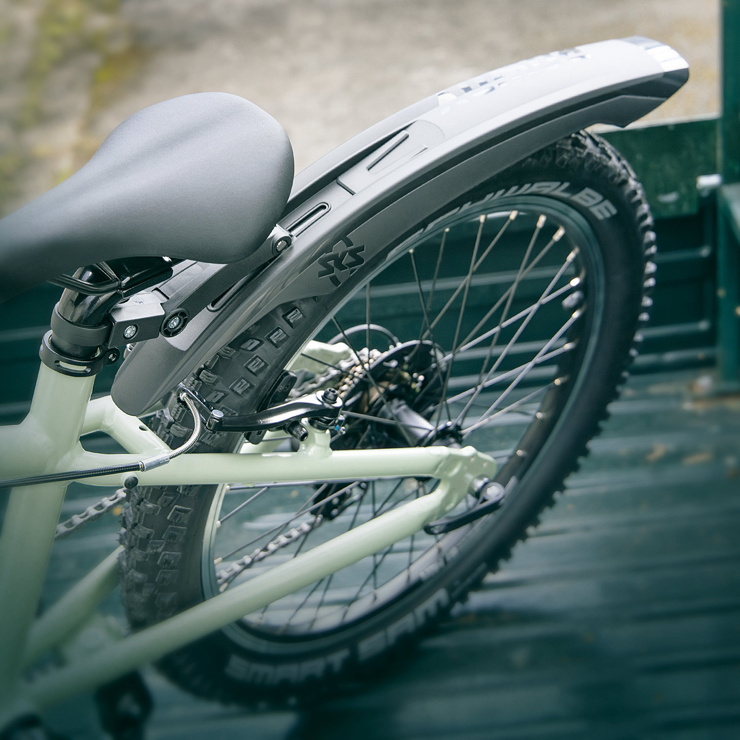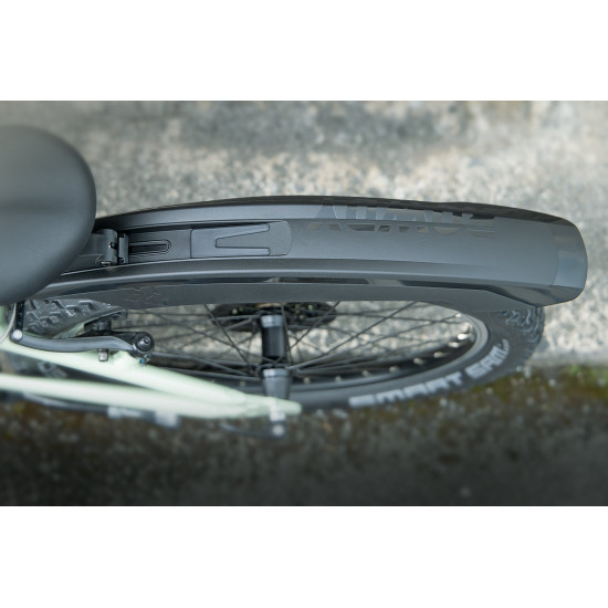 The ROWDY is mounted on the rear wheel with a newly developed, angle-adjustable mounting system, which can be released with just one screw. And because children grow quickly: The multi-adjust system grows with them, allowing for adjustment to different frame sizes. To ensure that the kids are safe whilst out and about in the forest or on the way to school, an optional USB rear light can be integrated into the mudguard.