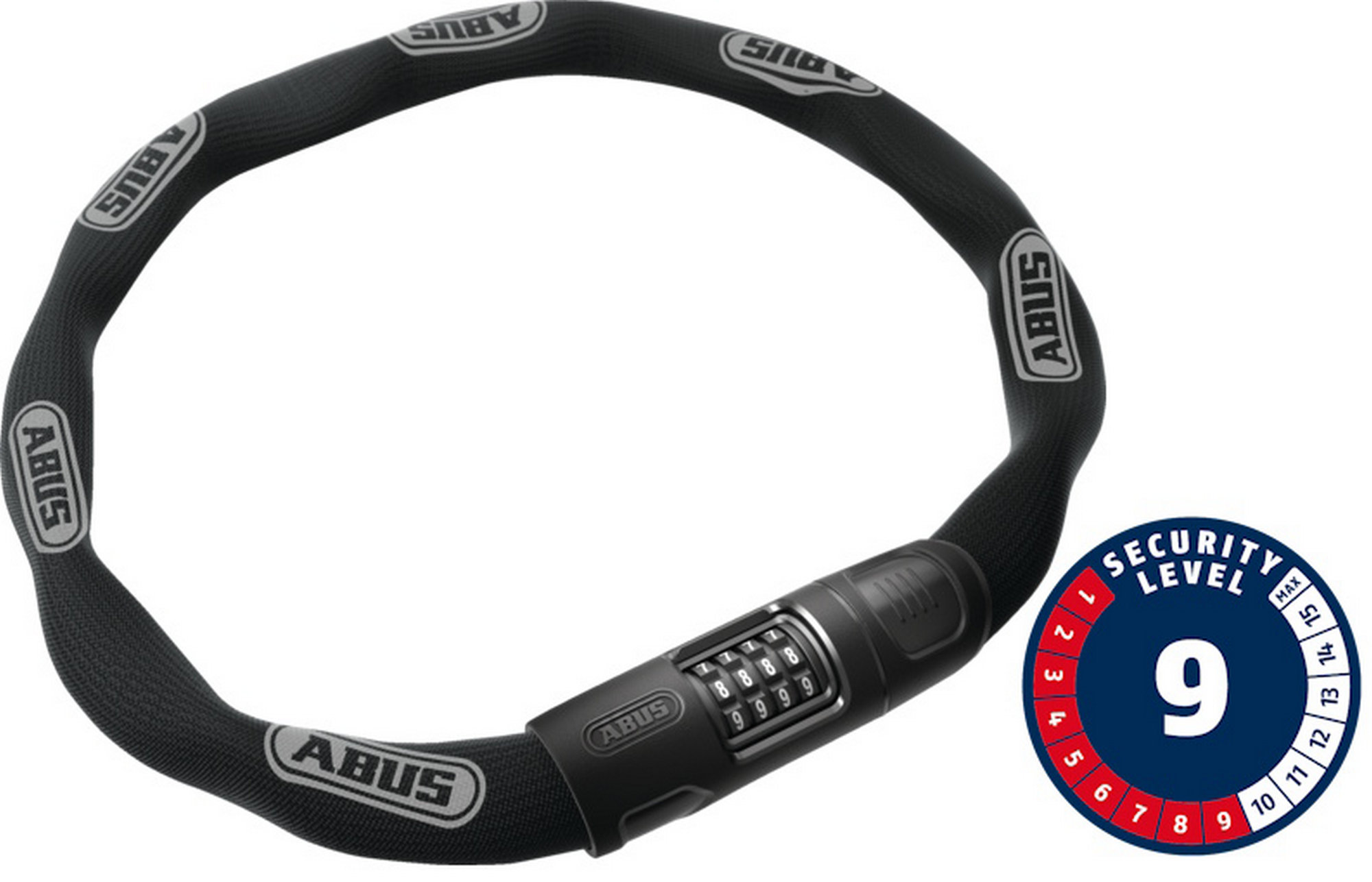 8 mm chain with fabric sleeve to prevent damage to the bicycle‘s paintwork