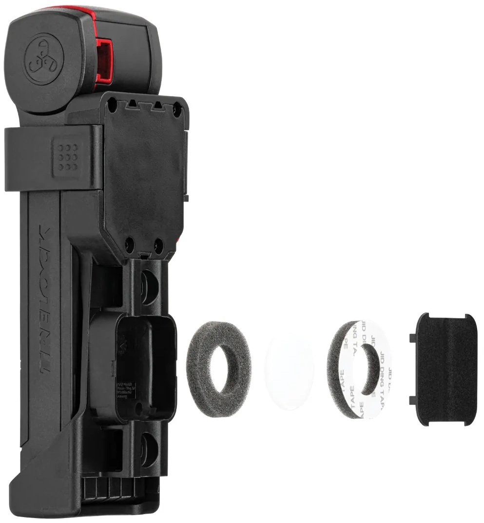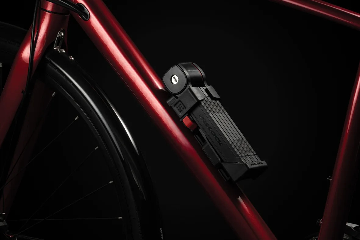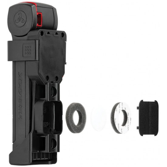 X-MOVE - With the new innovative X-MOVE bracket for folding locks TRELOCK offers cyclists variability and versatility. The folding locks can be easily removed to all sides. The innovative X-MOVE bracket is provided with an easy-to-operate lug and can be fastened by left-handed and right-handed persons. In addition, the bracket can be attached to bicycle frames of different geometries and provides for vibration-proof transport.
