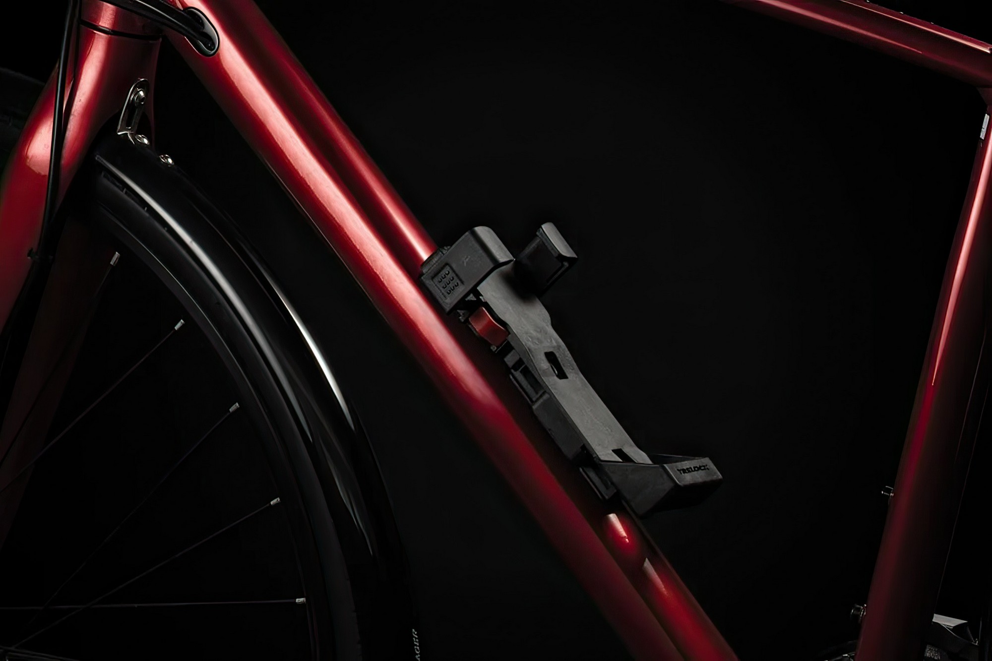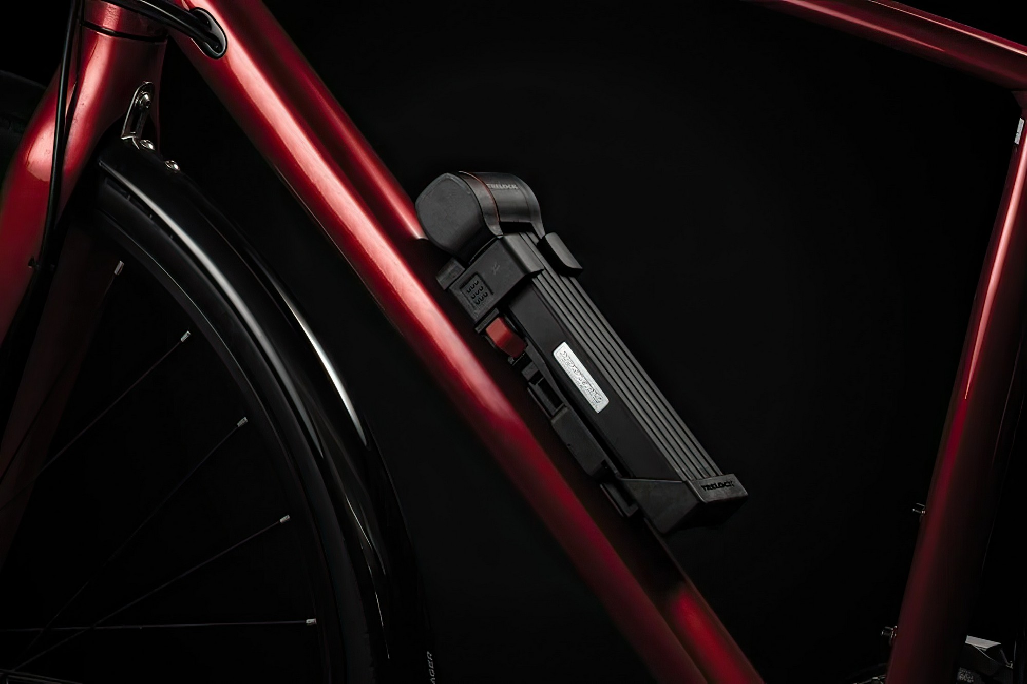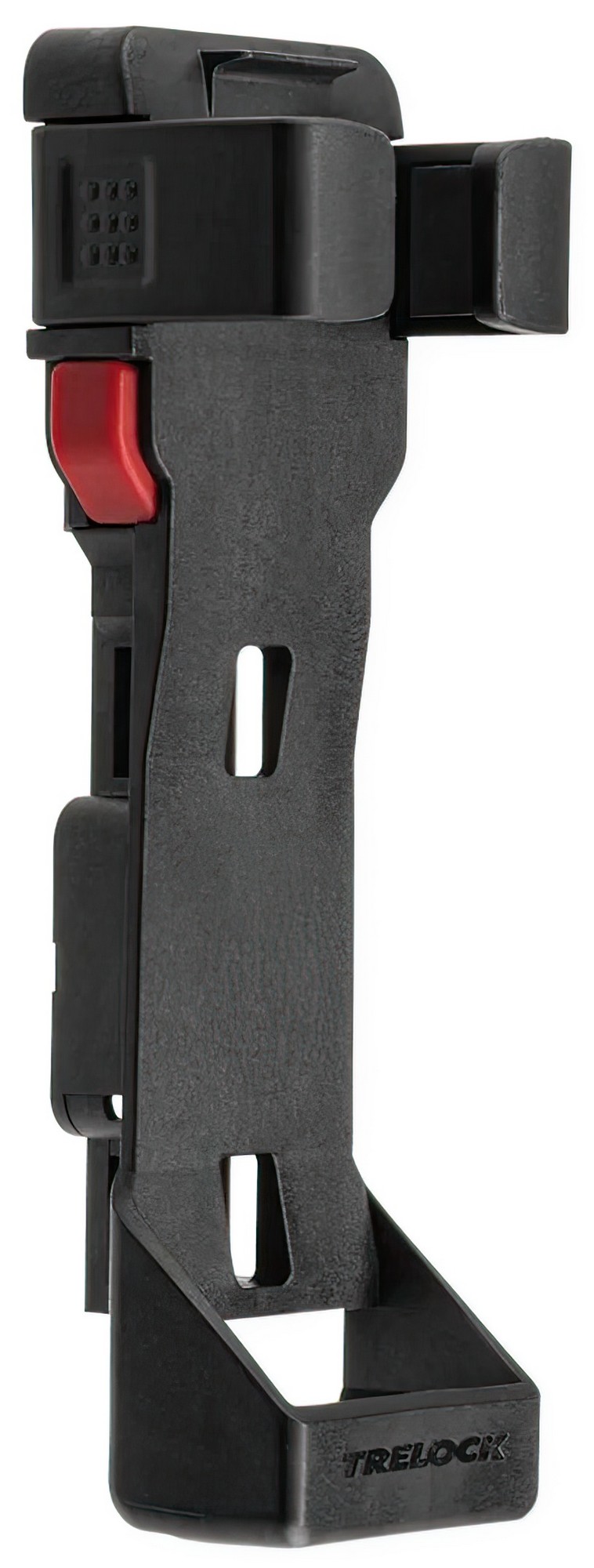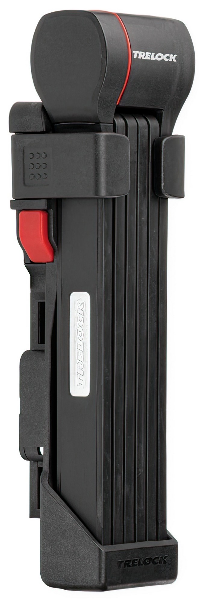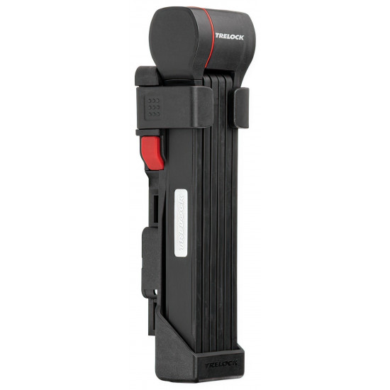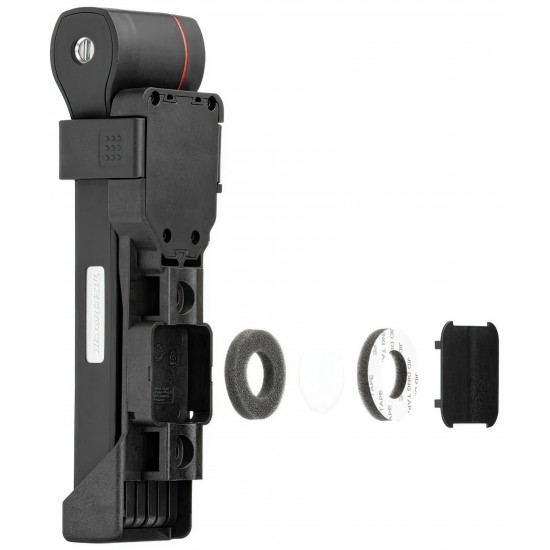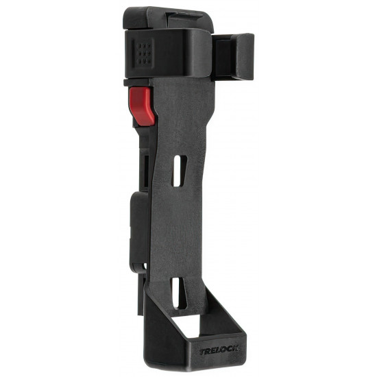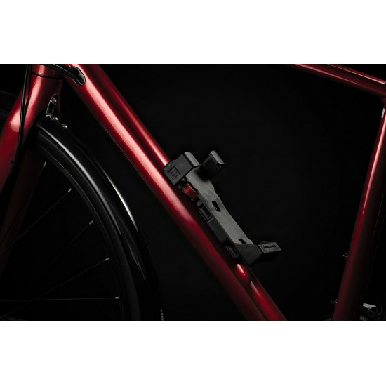 The new FS 480 COPS in the new TRELOCK look, is the compact new addition to the popular COPS folding lock series. The special highlight, however, is the back of the bracket: here, an Apple AirTag or a Samsung SmartTag can be hidden inconspicuously and securely. With the tags, the bike can be tracked via smartphone with minimal effort. The rubberized links made of hardened steel can be unfolded up to 1 m in length. Locking a bike to a stationary object is even easier. For convenient locking, the FS 480 COPS is equipped with a 360 degree rotatable insertion area on the lock head and a reversible key. The IN-X cylinder is protected from dust and dirt by a cover. The 100 cm version comes with the new X-PRESS bracket. The new locking mechanism of the X-PRESS holder makes it even easier to remove and insert the lock. To remove the lock, press the red button and the lock is released. To secure the lock in the bracket again, simply press the brackets together.