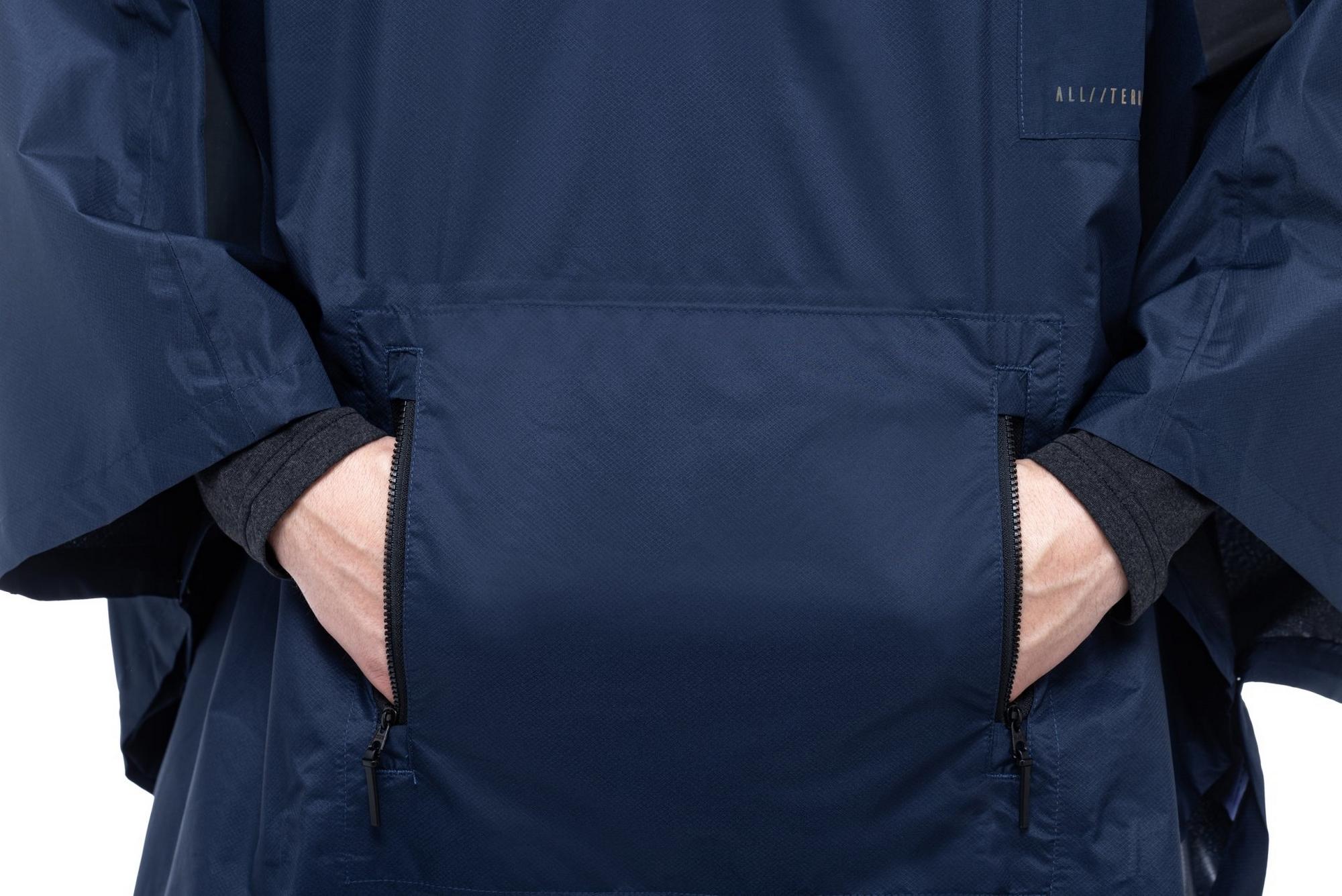The utility poncho is all you'll need to fend off the rain. Combining multi-layered technical fabric, taped seams and a water-resistant zip, it's your stay-dry guarantee. An integrated peak on the hood keeps the water out of your eyes. And because we think there are some things you just shouldn't have to do without, we included side zip pockets for easy access to all the essentials. Reflective details improve your visibility.