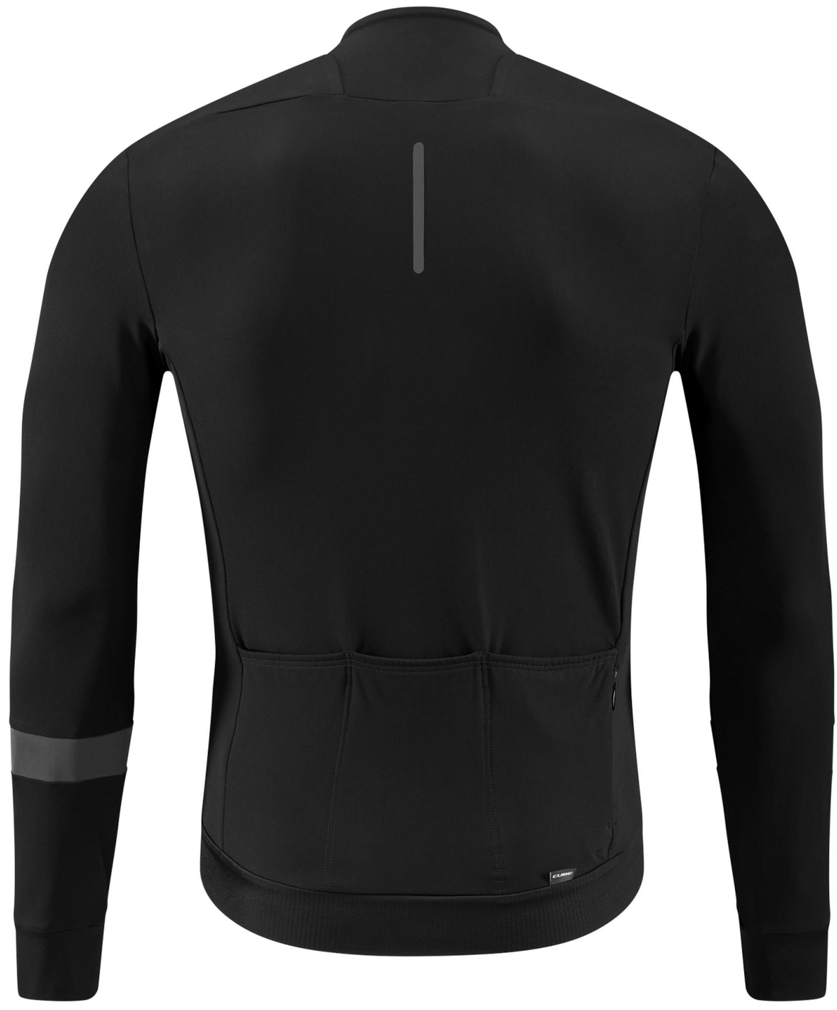 Don't be fooled by its deliberately understated looks. Our new cube road/xc long-sleeve jersey has been designed with ambitious cyclists in mind. The athletic cube v-shape cut fits closely to the torso but leaves plenty of shoulder room. Maximum freedom comes courtesy of a full-length front zip, while the silicone print hem and pre-shaped collar for maximum draught protection keep everything sitting pretty. 3 Rear pockets and a waterproof side zip pocket have plenty of room to stow your valuables.