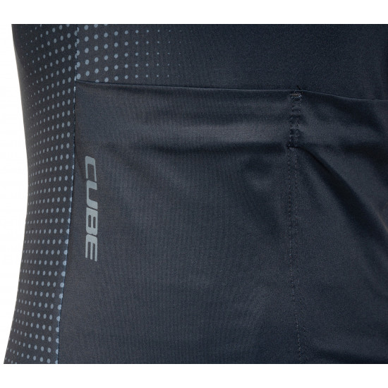 The CUBE Road/XC Short Sleeve Jersey combines a performance fit with thoughtful details. Its athletic cut provides freedom of movement across the shoulders for a natural feel on the bike. A full-length front zip makes it easy to put on and take off. The silicone-printed hem and pre-shaped collar keep the jersey securely in place and shield against draughts. Three rear pockets offer space for snacks and tools, while a hidden, water resistant zip pocket on the side keeps valuables like your phone or cash safe and dry.