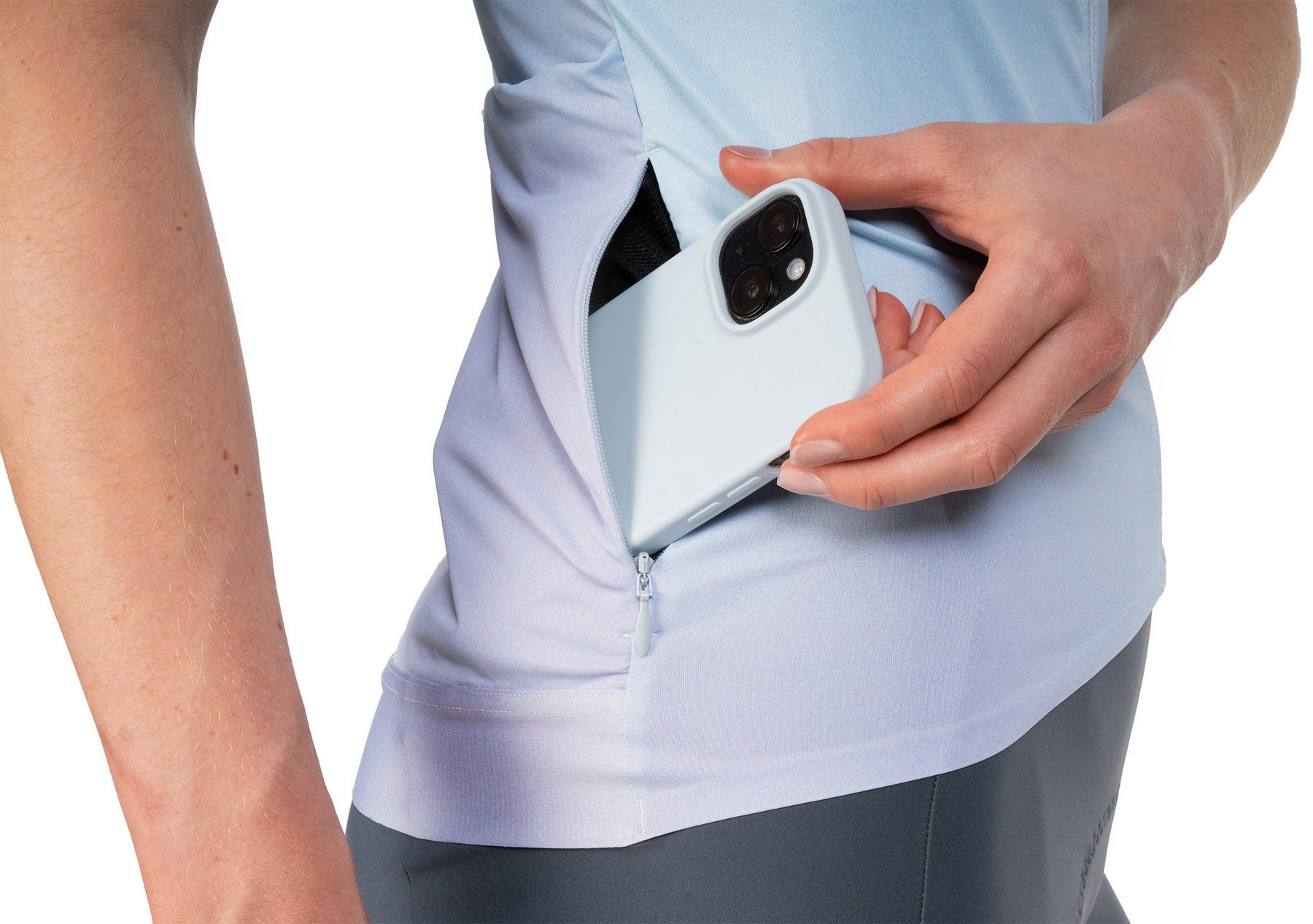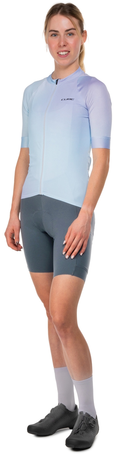 Maximum performance, every mile: The ROAD/XC Women’s Jersey features an athletic cut that fits perfectly to your riding position and moves with you effortlessly. The durable, quick-drying fabric keeps you comfortably dry – even during intense efforts. A full-length front zip allows for flexible ventilation, while a small water resistant zip pocket at the back keeps your essentials safe and secure. An elastic silicone gripper at the hem prevents the jersey from riding up, and reflective details enhance visibility in low-light conditions.