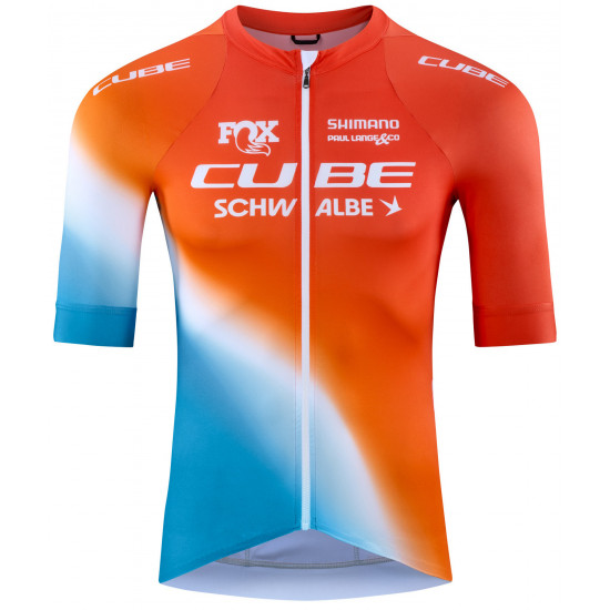 The CUBE Road/XC Short Sleeve Jersey combines a performance fit with thoughtful details. Its athletic cut provides freedom of movement across the shoulders for a natural feel on the bike. A full-length front zip makes it easy to put on and take off. The silicone-printed hem and pre-shaped collar keep the jersey securely in place and shield against draughts. Three rear pockets offer space for snacks and tools, while a hidden, water resistant zip pocket on the side keeps valuables like your phone or cash safe and dry.