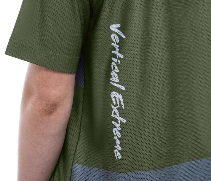 - Material: Front part and sleeves: 85% polyester, 15% elastane; Back part - 100% polyester