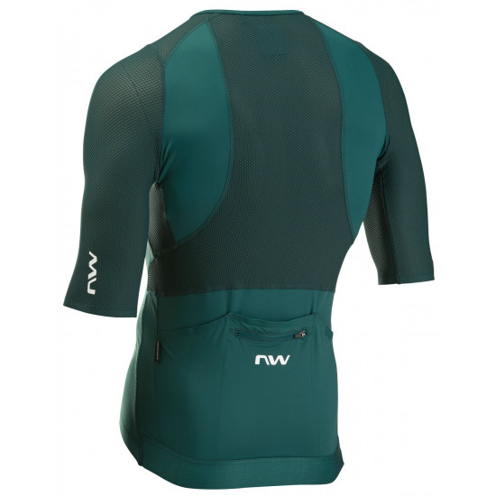 Northwave Extreme Rock jersey, with mesh panels are placed where the jersey overlaps the backpack to maximize breathability. Contrast stitching is a detail that attests to its distinctiveness. Dyed fabric with upf50+ protection and heat-sealed seams at the front hem and sleeve hem give the design a functional, uncluttered flavor with invisible but essential details. Three large back pockets with heat-sealed seams at hem.