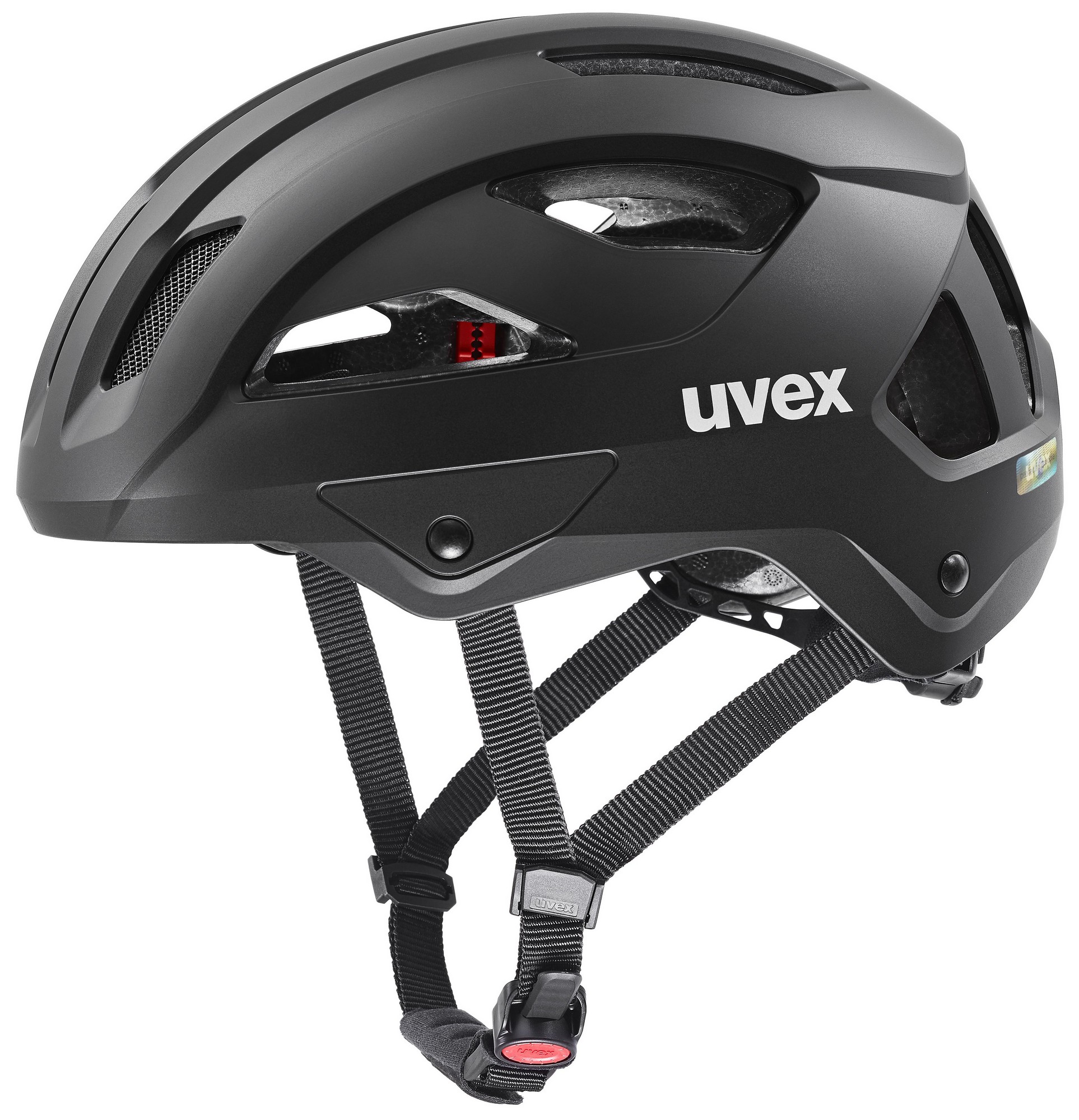 MONOMATIC – Multi-stage and anatomically shaped uvex’s monomatic comfort closure opens and closes at the touch of a button, with just one hand. The chin strap always sits perfectly.