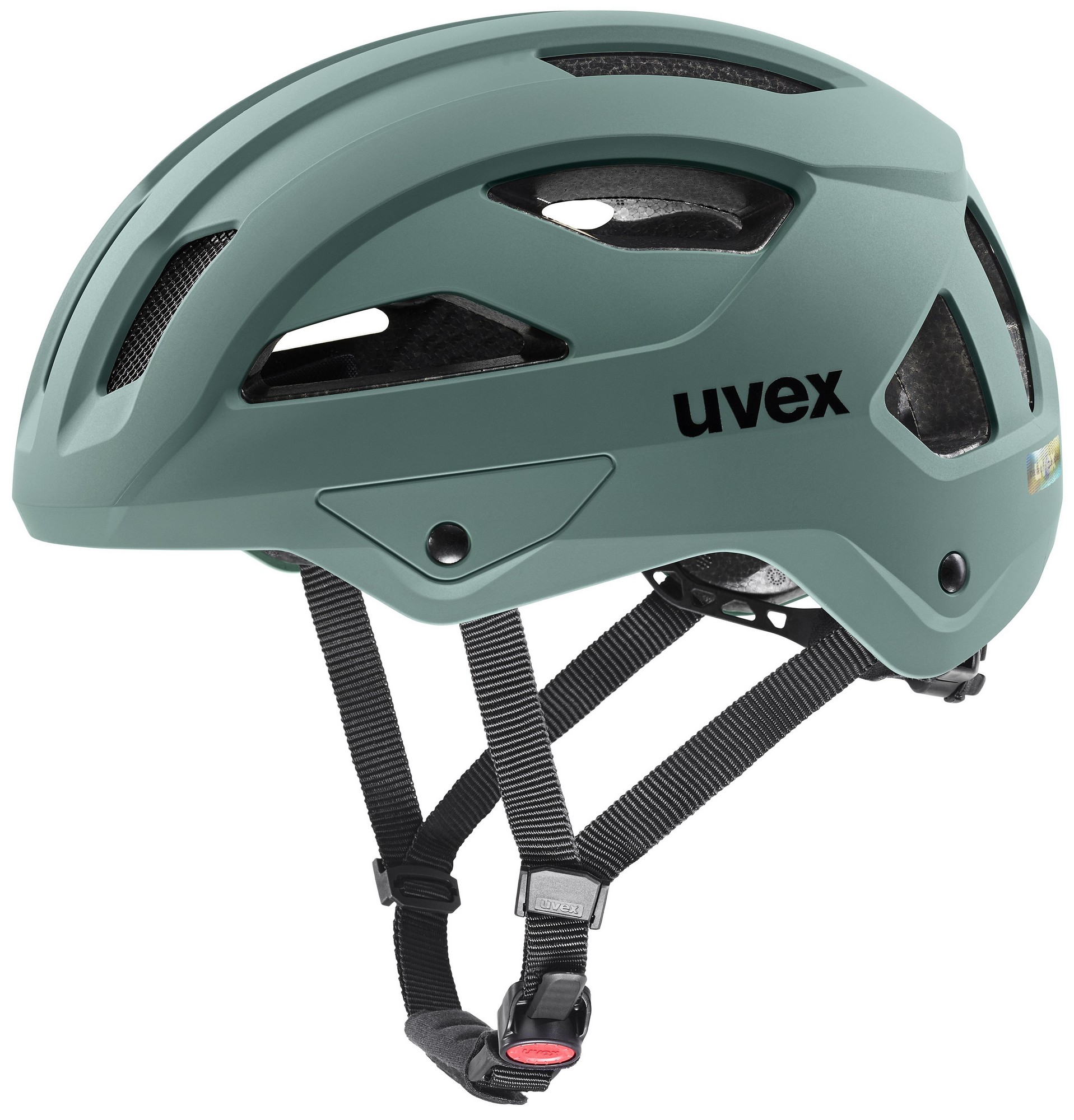 MONOMATIC: Secure, comfortable fit and easy handling at the touch of a button. The multi-stage, anatomic uvex monomatic comfort fastener can be used with one hand only at the touch of a button. This way, you can precisely adjust the length of the chin strap and ensure a secure fit of the helmet.