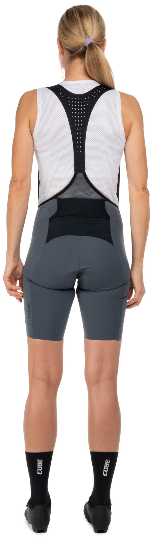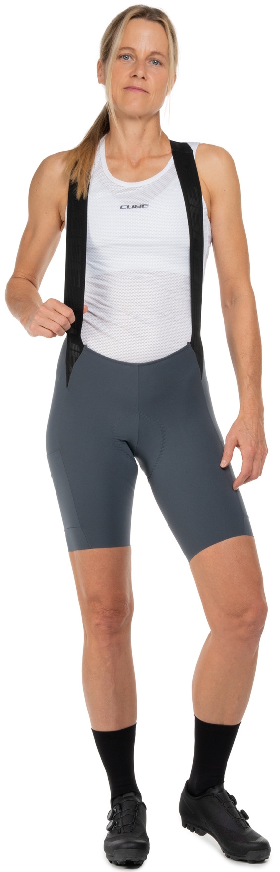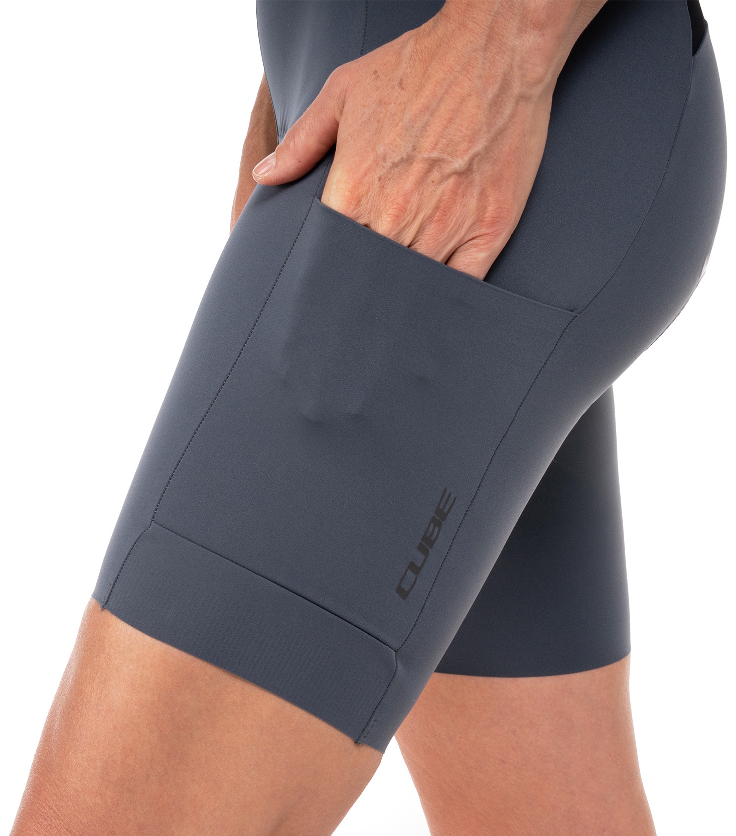 The CUBE GRAVEL WS Cargo Bib Shorts are made from breathable stretch fabric combined with an ergonomic cut to deliver outstanding comfort and freedom of movement. Anti-odour treatment effectively combats unwanted odours. Soft, elastic straps with a magnetic rear fastener ensure a secure yet practical fit. Side leg pockets provide convenient storage for tools, snacks and other essentials, while the premium CUBE WS Team Pad enhances comfort over longer distances. Ideal for ambitious women cyclists who value functionality and comfort.