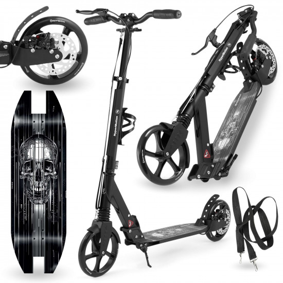The HyperMotion Skyline scooter will give you a quick commute to school or work. It will also work well during afternoon trips, providing you with the necessary dose of exercise. Designed for adults, teenagers and children over 6 years old, it guarantees a comfortable yet safe ride. Decorated with a print with a skull motif, it will perfectly emphasize your unique style and allow you to take even more pleasure from active recreation.