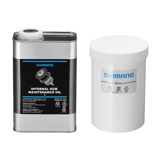 The maintenance kit for Shimano 3-, 5-, 7- and 8-speed Internal Hubs. The kit consists of a special oil in 1000 ml oil canister and a dipping vessel for the internal hub mechanism. Not suitable for SG-S700/S705 11-speed internal hubs.