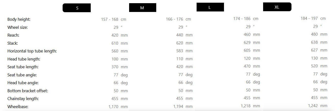 - Chain stay: 455 mm